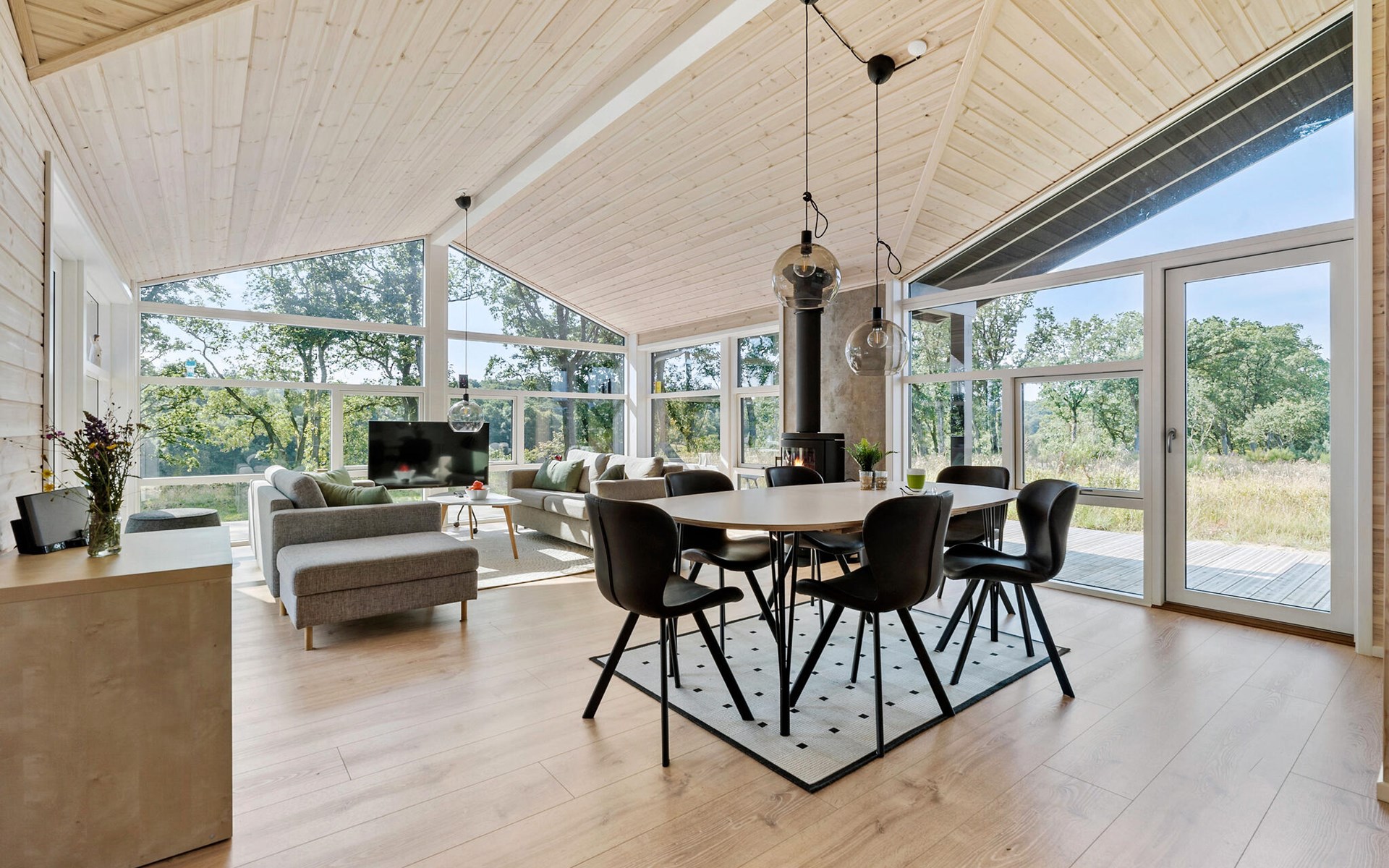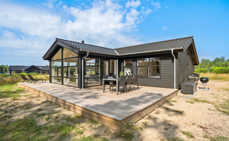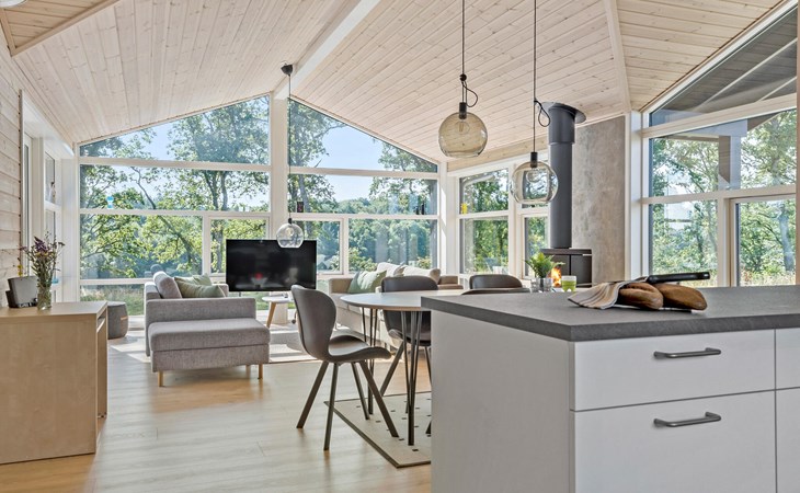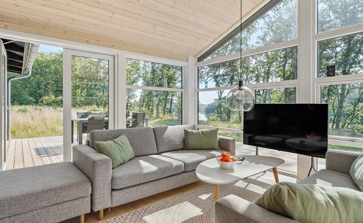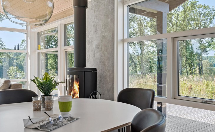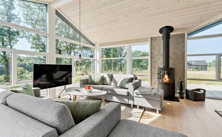 Start the day with breakfast in the modern, fully equipped kitchen, which has everything you need to prepare your favourite meals. Surrounded by the idyllic natural scenery of the Rørbæk Sø lake, this modern house offers the ideal retreat for your holiday. The large panoramic windows in the living area let in plenty of natural light and give you a marvellous view of the lake. Leave everyday life behind you and make yourself comfortable on the cosy sofas while you enjoy the view or warm yourself by the wood-burning stove.