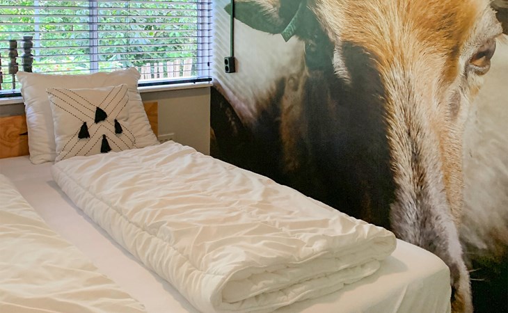 Your holiday home in a holiday home village in the Dutch province of Overijssel offers you the ideal facilities for a successful family holiday. The charming holiday home exudes a cosy atmosphere and offers you everything you need for an unforgettable stay. The wood panelling and comfortable seating make the house a real feel-good place. The spacious dining table is ideal for family gatherings, whether for meals, card and board games or stimulating conversations about the day's adventures.