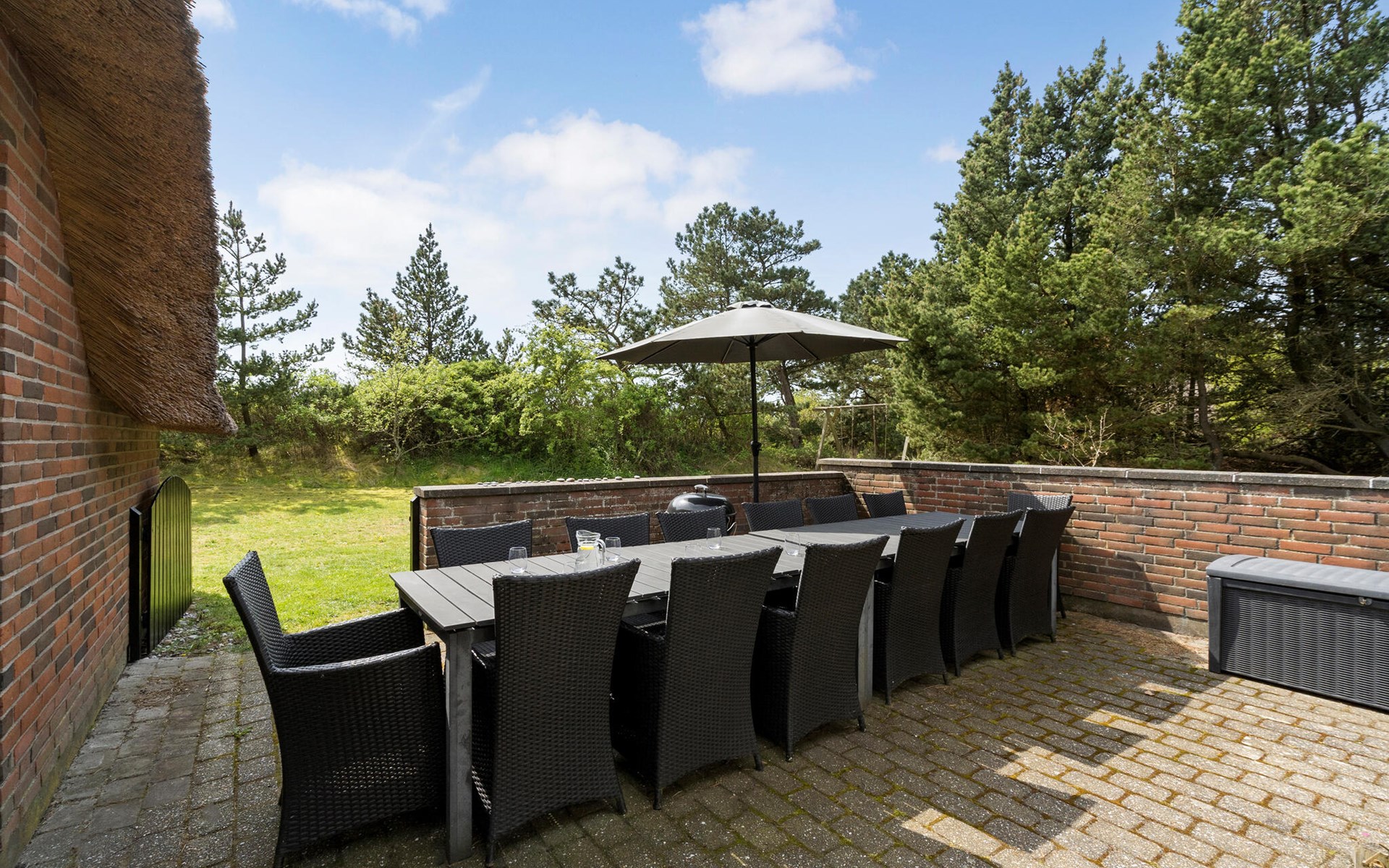 Spend lots of time outdoors, where the terrace invites you to soak up the sun and enjoy a barbecue while the children swing and dig happily.