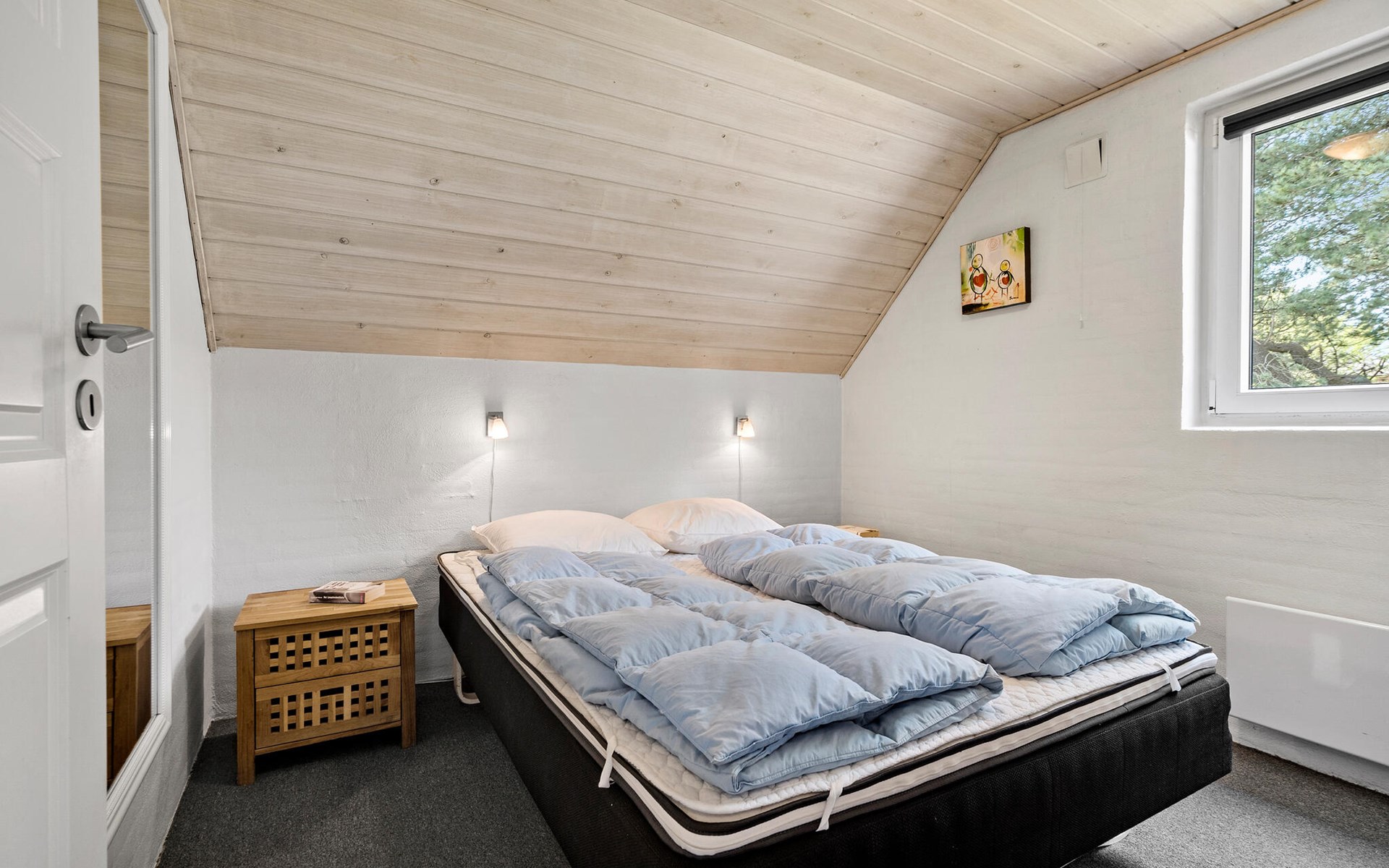 Take a stroll to the sea, where nothing stands in the way of exuberant swimming fun and unforgettable days at the beach. You will spend your vacation on a headland between Ringkøbing Fjord and the North Sea. The surrounding area offers a variety of activities for the whole family. There are good fishing opportunities in Hvide Sande, where you can also visit the aquarium in Fiskeriets Hus. Or you can take a trip along the Vestkystruten cycle route, which stretches from Oksbøl in the south to Bulbjerg in the north. The Tipperne bird reserve is also worth a visit.