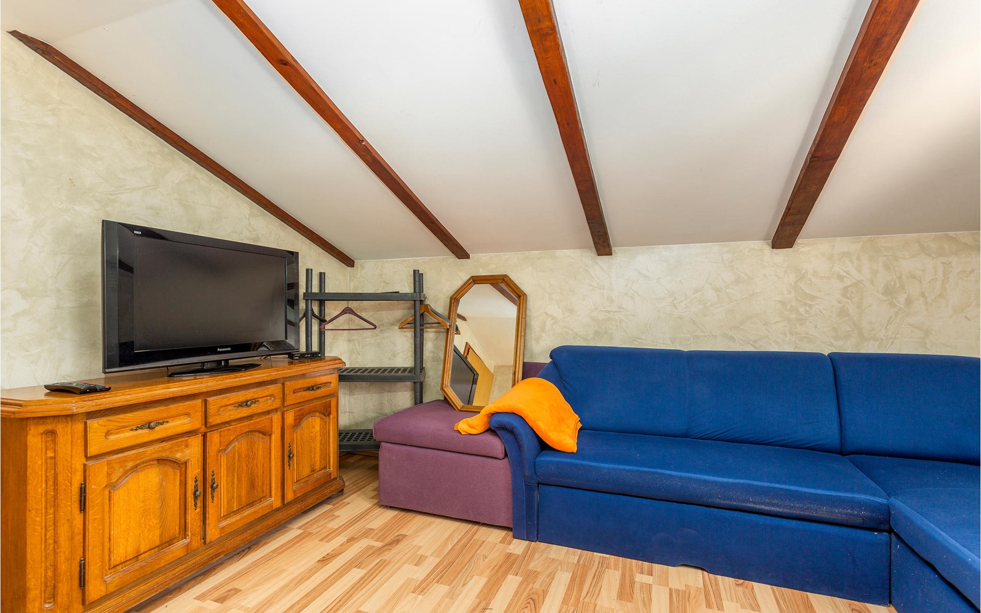 These functionally furnished holiday apartments are located in the beautiful village of Njivice on the island of Krk. Roof pitch in CKK006 at 150 cm, in CKI007 at 140 cm. There is a shared barbecue on the property. The holiday apartments, booked together, are suitable for several families or friends who want to spend their holiday together. There is a laundry in the garage. Njivice is a tourist destination, perfect for a relaxing stay during the summer, but also in spring and early autumn. Nearby there are hiking and cycling trails as well as horse riding opportunities for an active holiday. Enjoy the rich gastronomic offer with traditional dishes. Those looking for entertainment can head down to the centre of Njivice. The island has many places of interest, such as the beautiful beach in Baka and Vrbnik, where you can taste the local Vrbnika lahtina wine.