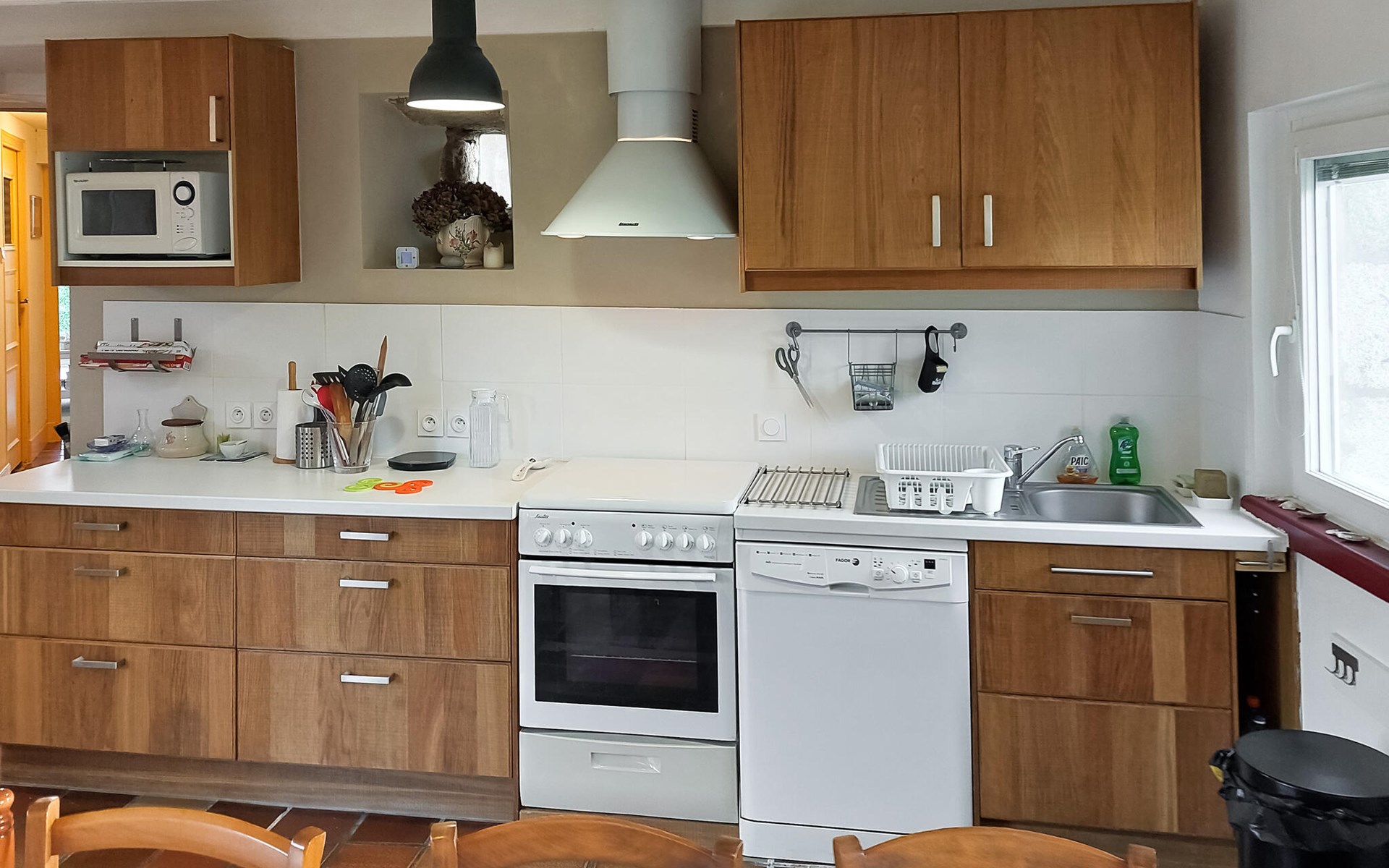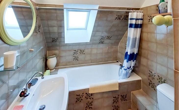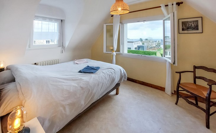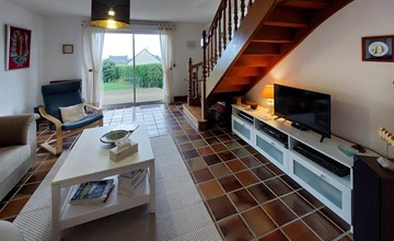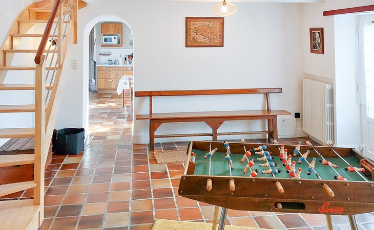Look forward to your vacation in this family home on several levels. There is plenty of space for your extended family and friends to relax and spend time together. Go about your daily vacation routine in the brightly decorated house, play games, be inspired by French cuisine in the kitchen and enjoy meals on the beautiful wooden terrace surrounded by flowering shrubs. Enjoy the sea view and watch your children run around on the lawn.