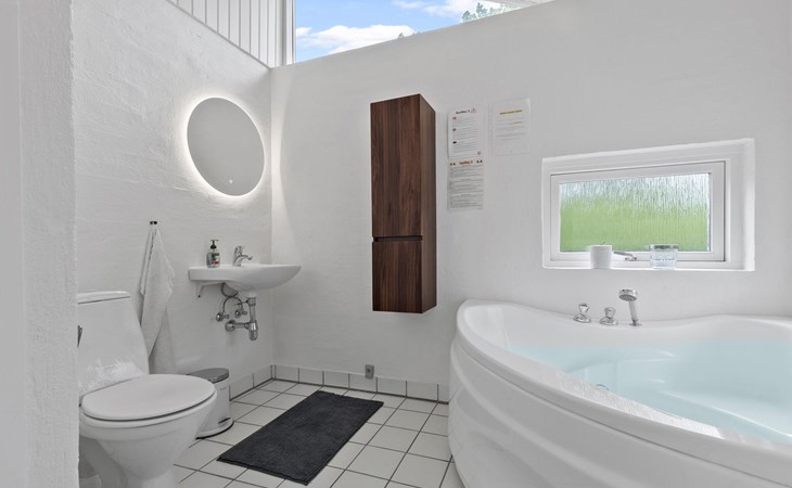 This well-kept holiday home with massage tub and sauna is located in Gjerrild Nordstrand. There is a partially covered terrace in front of the kitchen/living room. There is a lawn and fire pit on the large property. Here you will experience many beautiful holiday days and evenings. The sandy beach with dunes is within walking distance. Gjerrild Klint offers hobby anglers plenty of fishing grounds, especially sea trout. You can also experience Grenaa's charming streets and perhaps visit the Kattegatmuseum. A day trip to Varberg in Sweden is also a good idea.
