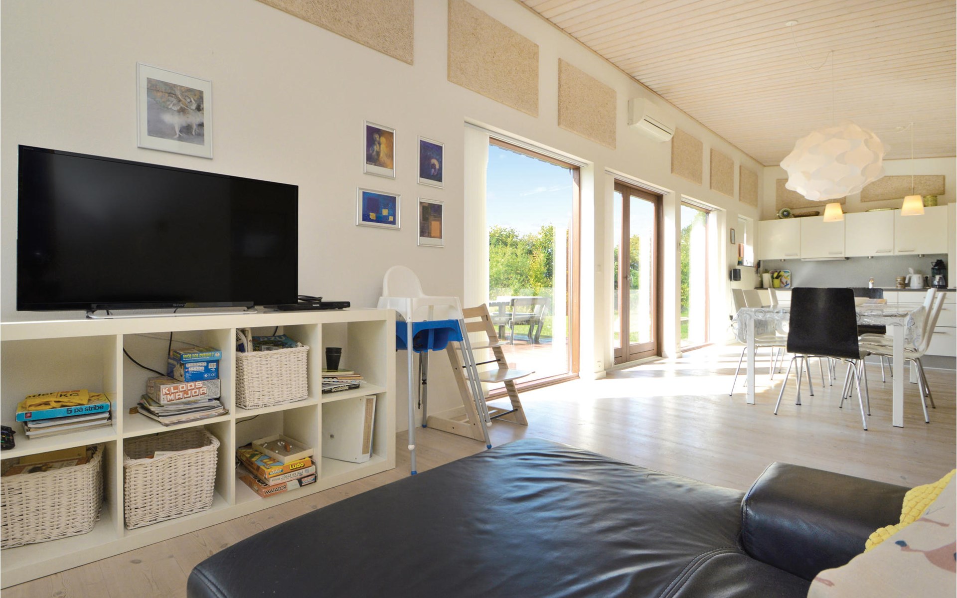 Cottage located in a recently developed cottage area and on one of the best swimming beaches on the east coast. By the house there is no passing traffic at all. On one side the property borders on a common area with a ball playground, on the terrace side you have a beautiful panoramic view of the green landscape.