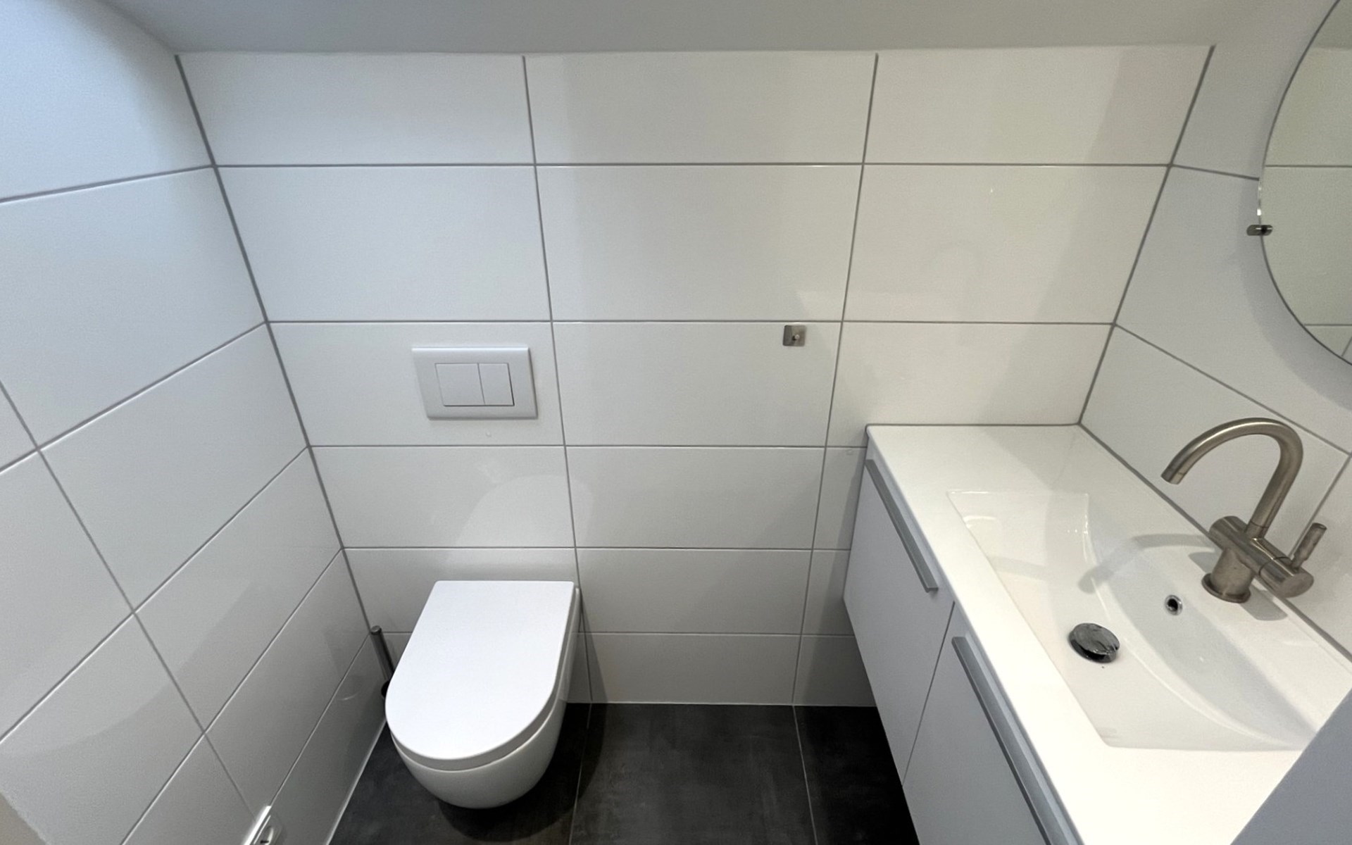 You can directly enter the spacious terrace from the living room. You can perfectly enjoy the sun and the privacy the large garden (about 550 m2) provides here. Besides, you can easily stall your bike in the cabin after a nice cycling trip. Due to the garden being enclosed, the house is also suited for kids! You will find two parking spots right at the front door.