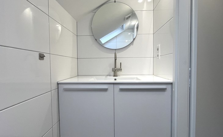 The house has a cosy living room with an adjacent dining area and a modern, well-equipped open kitchen with a dishwasher. The atmospheric fireplace completes the whole picture. Furthermore, the house provides you with three double bedrooms, one with a boxspring, a pantry and a modern bathroom.