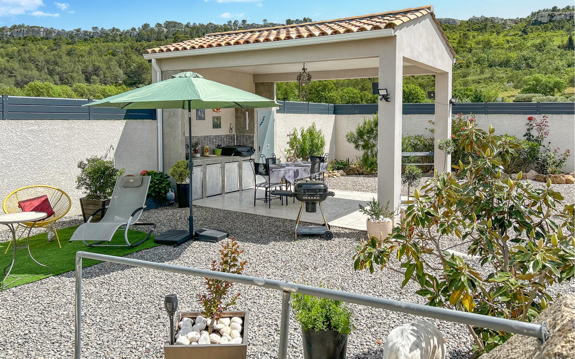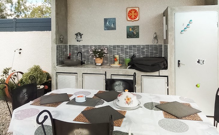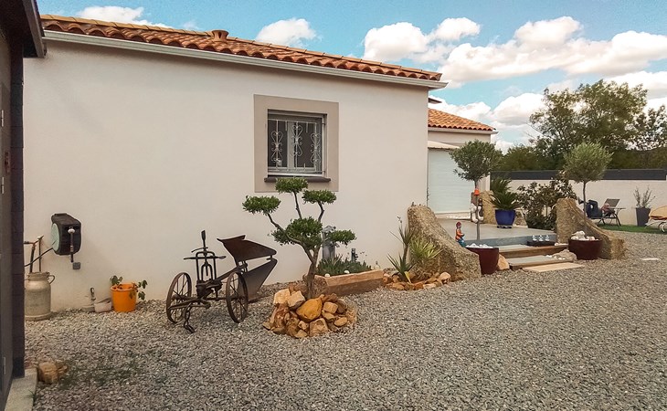 The cottage was completed in 2021 and is located on the outskirts of Saint Chinian near the Haut Languedoc Regional Park. It offers 2 bedrooms with double beds, the shower rooms and toilets are designed to meet the needs of people with reduced mobility. There is air conditioning in all rooms.