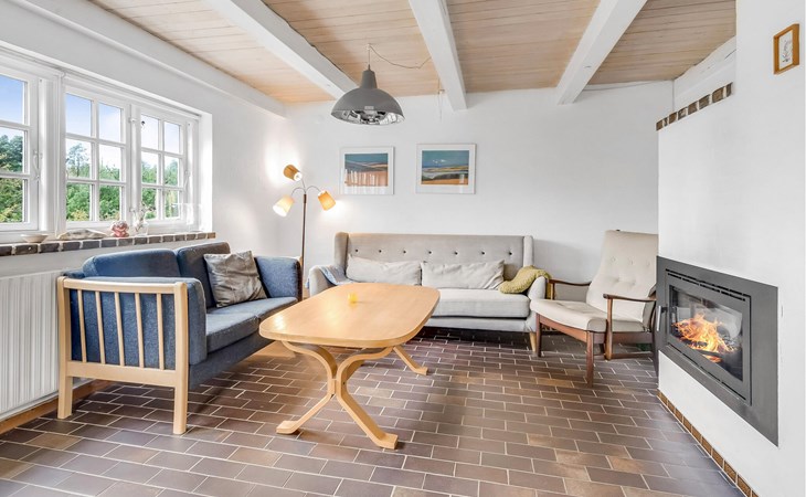 This cosy holiday home in Vedersø Klit offers you everything you need for a relaxing holiday on two floors. The living room with wood-burning stove invites you to enjoy cosy evenings, while the well-equipped kitchen offers space for cooking together. You can play table football on the upper floor, and the large terrace with barbecue area is perfect for relaxing at the end of the day. Watch your children play on the lawn while you enjoy the fresh air.
