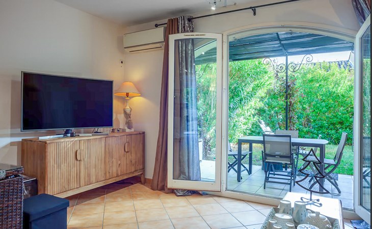 This tastefully furnished holiday home offers golfers and those seeking peace and quiet a stylish home in a well-kept and secure resort to enjoy sunny days in the heart of Provence. Conjure up culinary highlights in the open-plan kitchen and dine with a view of the greenery. After a long day, the lovingly designed living room invites you to spend harmonious hours reading a good book or playing a board game.