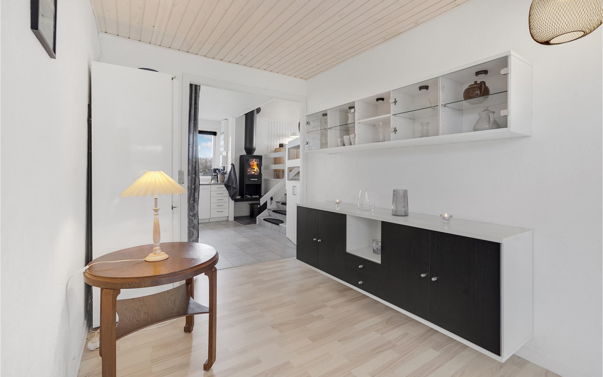 With a fantastic location on Diernæs beach and with beautiful panoramic views of the Little Belt, here you have the opportunity for a great and unforgettable vacation. Free view of the sea and the beach you have from the partly covered terrace. Between the house and the sea there is not very busy road. The living room of the house is located so high that you have a view of the sea even from here. The two levels of the house are connected by six steps.