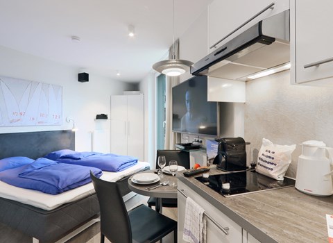 Het was een proper en handig appartement. Alles was ook aanwezig om eten te bereiden, zelf om appelsienen te persen etc.