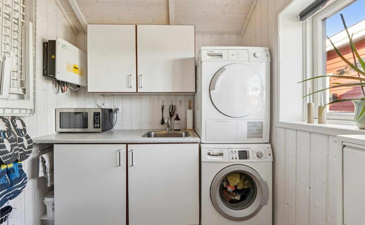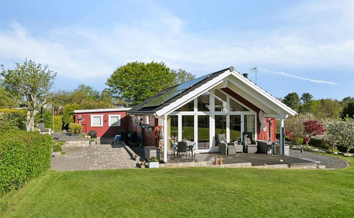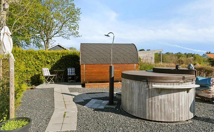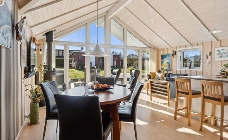 In this holiday home, you are only a few steps away from the fine sandy beach of the Kattegat, ideal for relaxing days by the sea. Step into the cosy living area, which boasts large windows, high ceilings and a harmonious furnishing concept. Settle down on the comfortable sofa area, enjoy your holiday to the full and cosy up with a film. The view of the beautiful garden creates a special atmosphere.