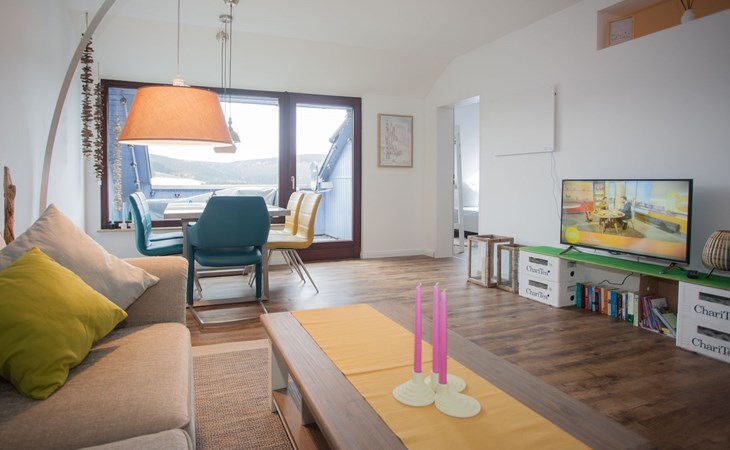The apartment is located on the 2nd Floor of a quiet residential building, which is located at the edge of the woods near the Hillebachsee . An ideal starting point for hiking and skiing. A parking space for your car is available in front of the house.