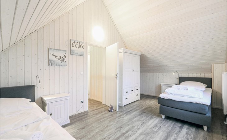 The vacation home is modern and comfortably furnished and the rooms extend over two floors. The first bedroom is equipped with a double bed, in the second bedroom you will find two single beds. The children can make themselves comfortable on the sofa bed in the living room.