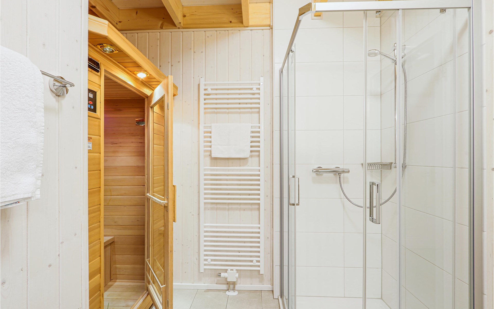 In the infrared heat cabin you can make yourself comfortable in cold days after a long walk on the beach and then relax in front of the fireplace in the living room.