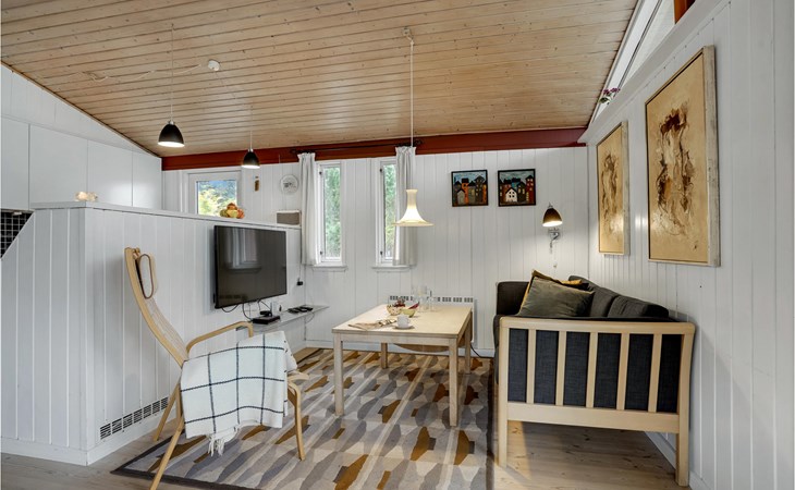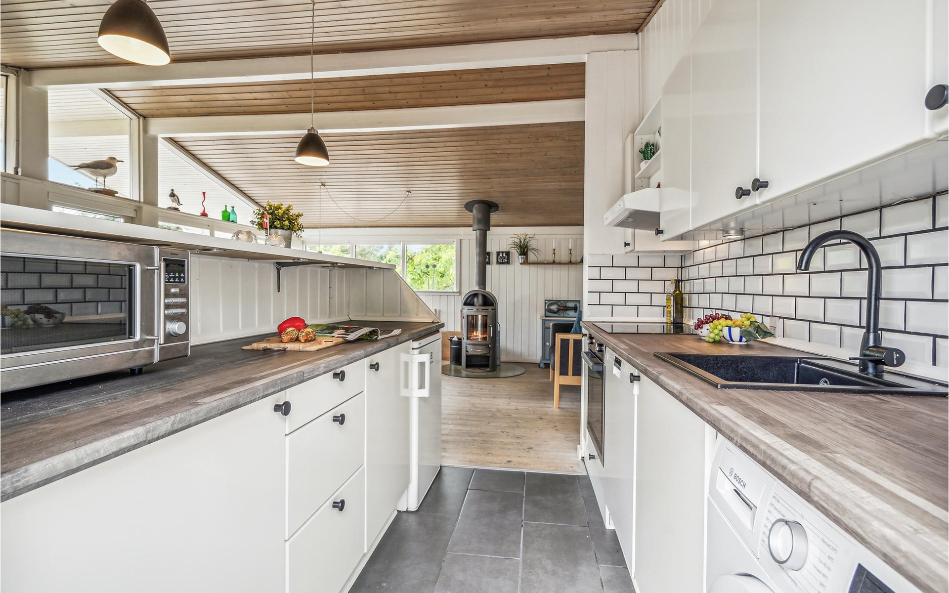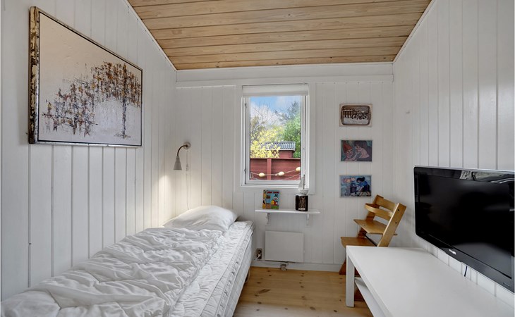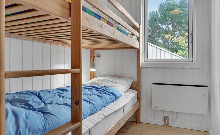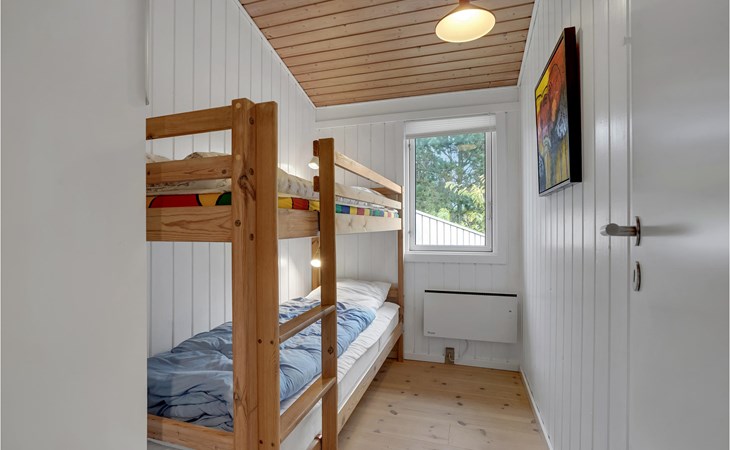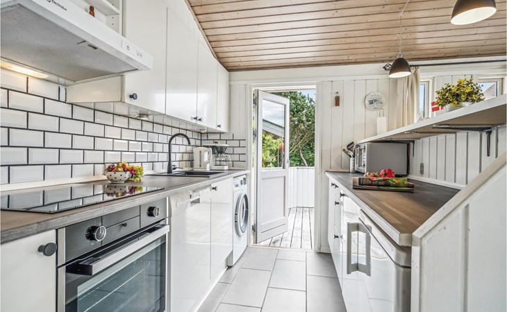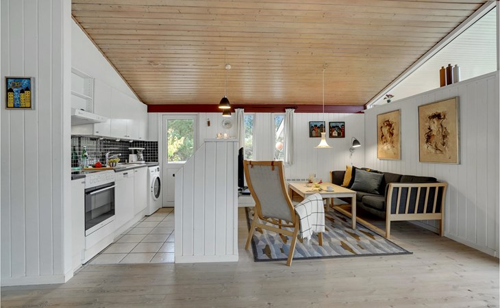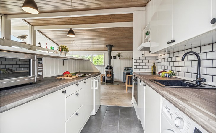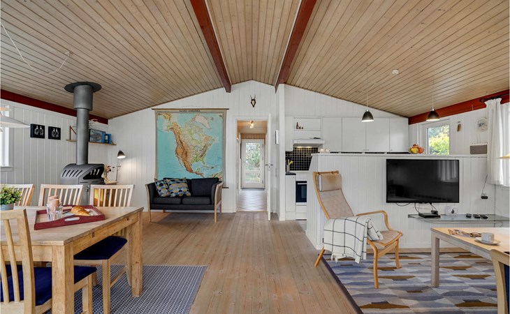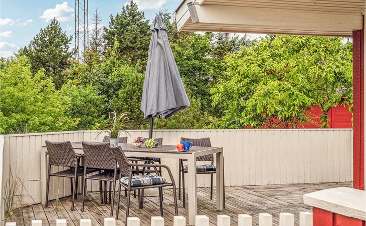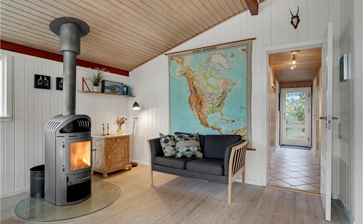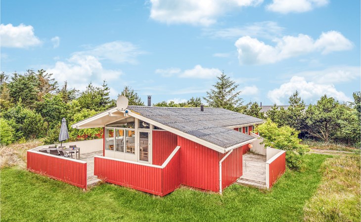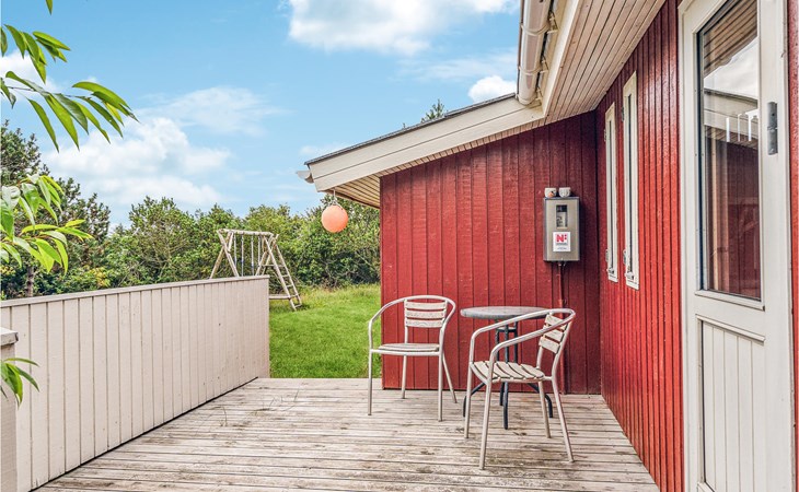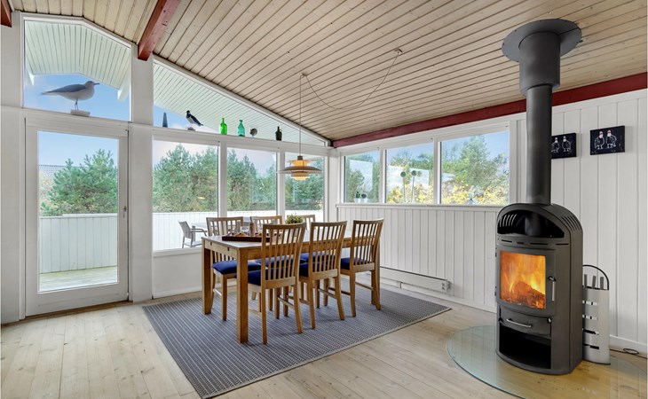Not far from Hvide Sande this cozy vacation home welcomes you. It offers space for you and your loved ones. Make yourself comfortable with a good book on the sofa by the fireplace or play board games with your children at the dining table and look out into the garden.