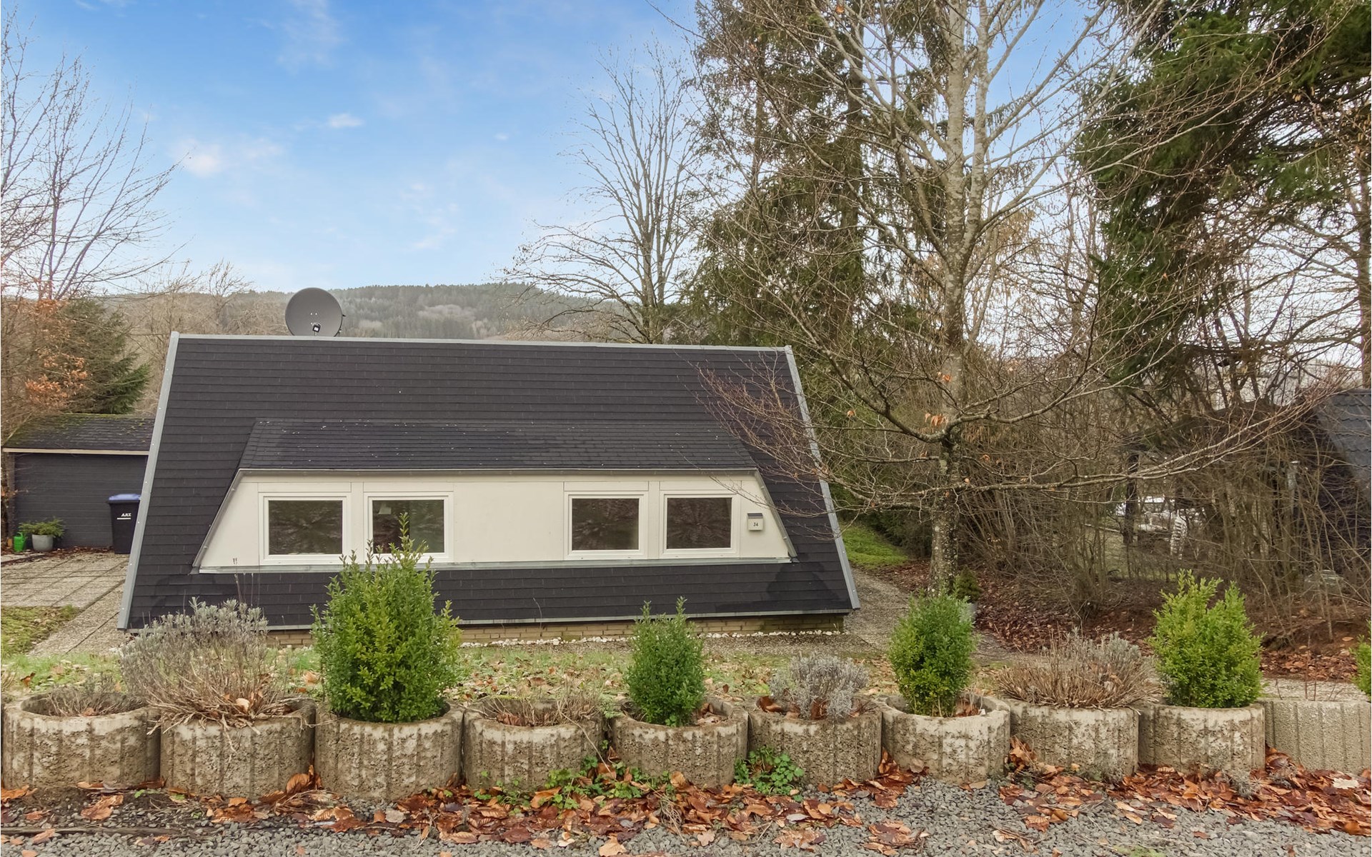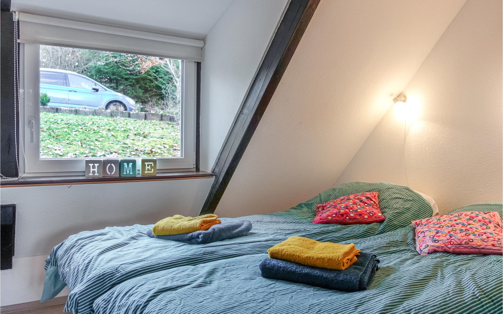Welcome to this beautiful house with a special architecture. Arrive with your small family and feel at home here. Whether you want to cook together in the kitchen or relax in the living room or play at the dining table. From both rooms you can enjoy a great view of the beautiful landscape of the Eifel. The house is equipped with everything you need for your relaxing vacation and also outside, you can enjoy the sun and your meals on the terrace.