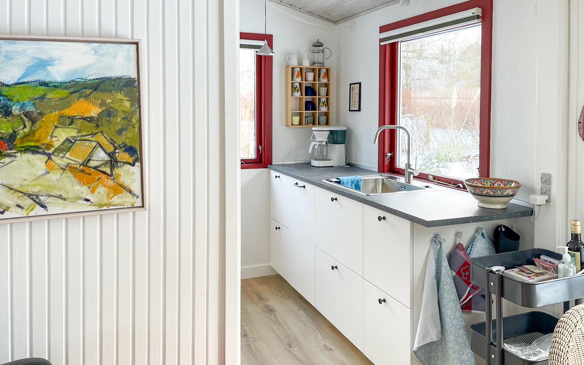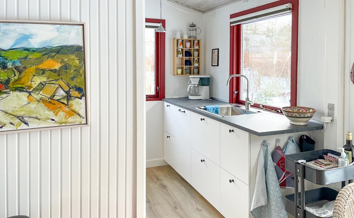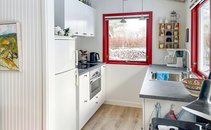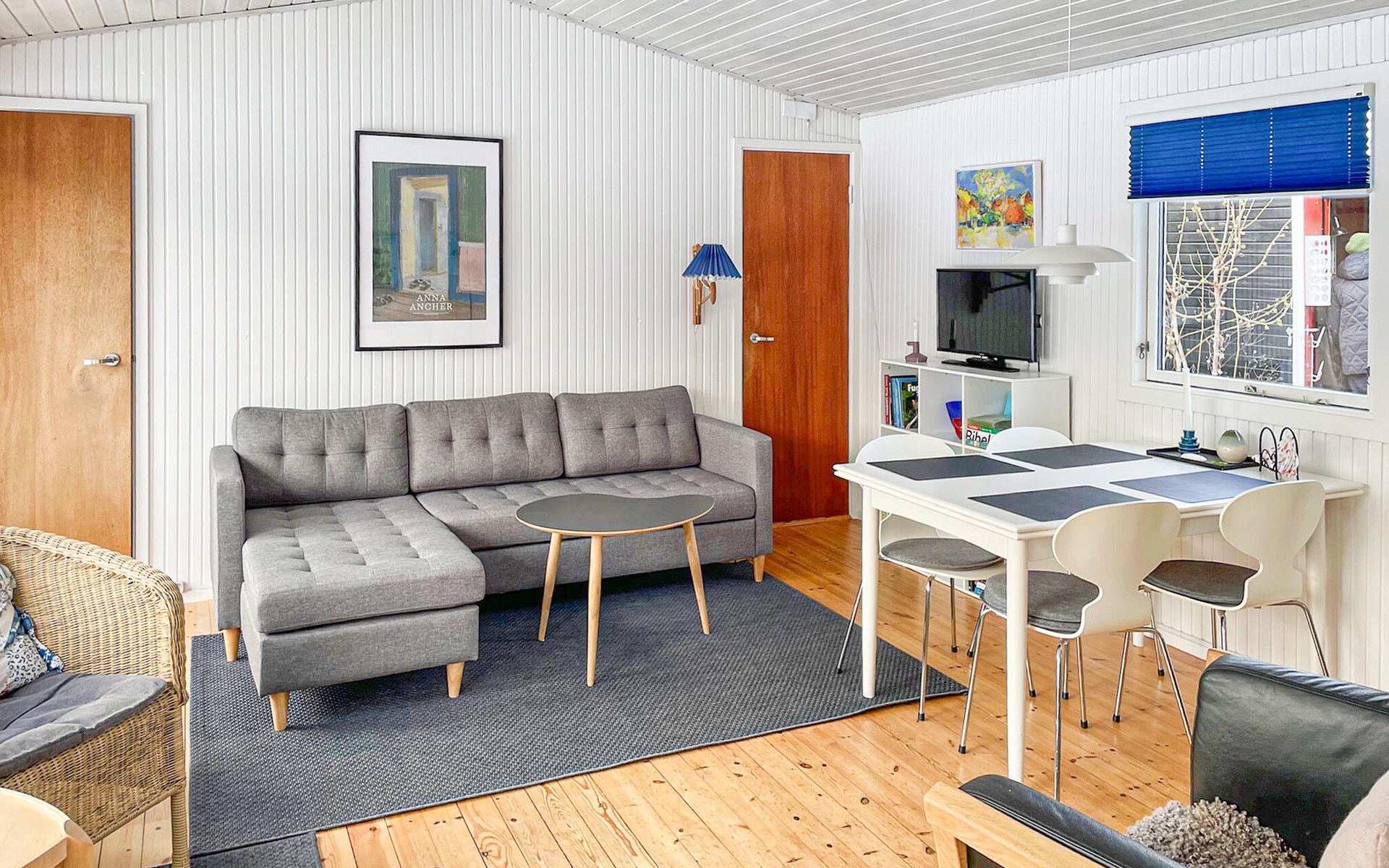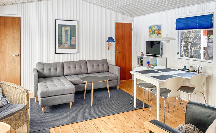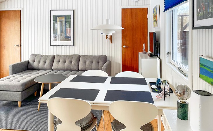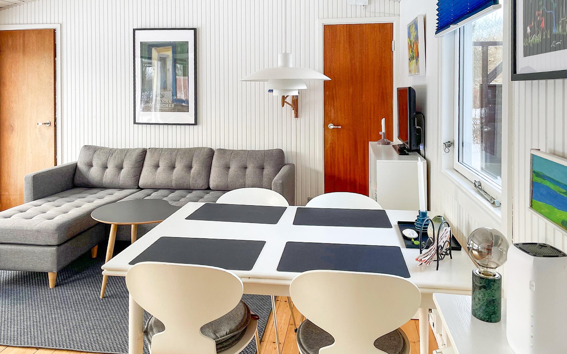 Spend a relaxing break in this holiday home very close to Roskilde Fjord. A peaceful atmosphere awaits you here, surrounded by nature and tranquillity. Make yourself at home in the bright living and dining area with its wooden floor, large windows and stylish furnishings. Take a seat on the sofa or in the cosy armchairs and let your gaze wander outside. Prepare your meals in the charming kitchen with a view of the garden. Enjoy a meal together at the dining table and spend relaxing evenings playing games or reading a good book.