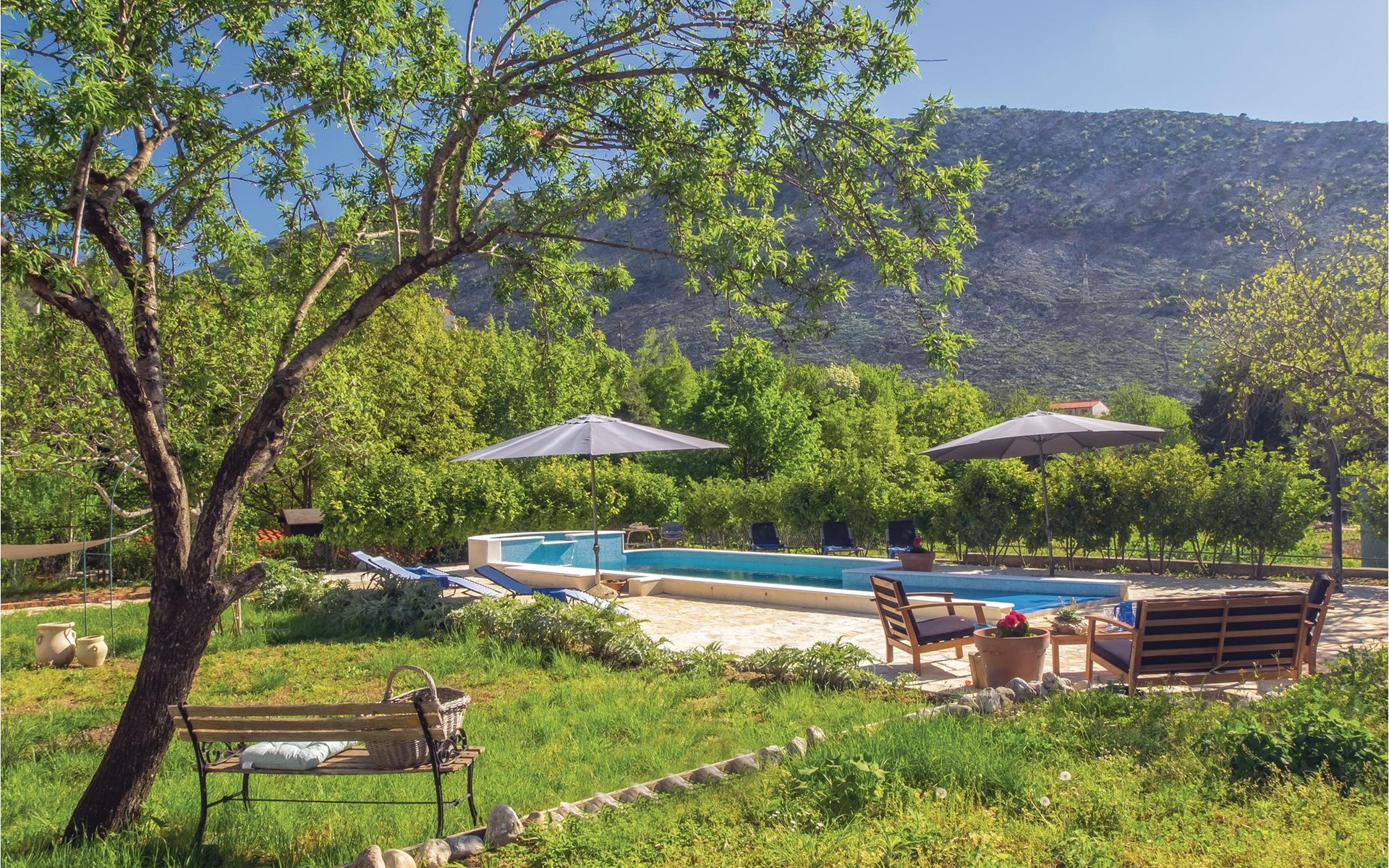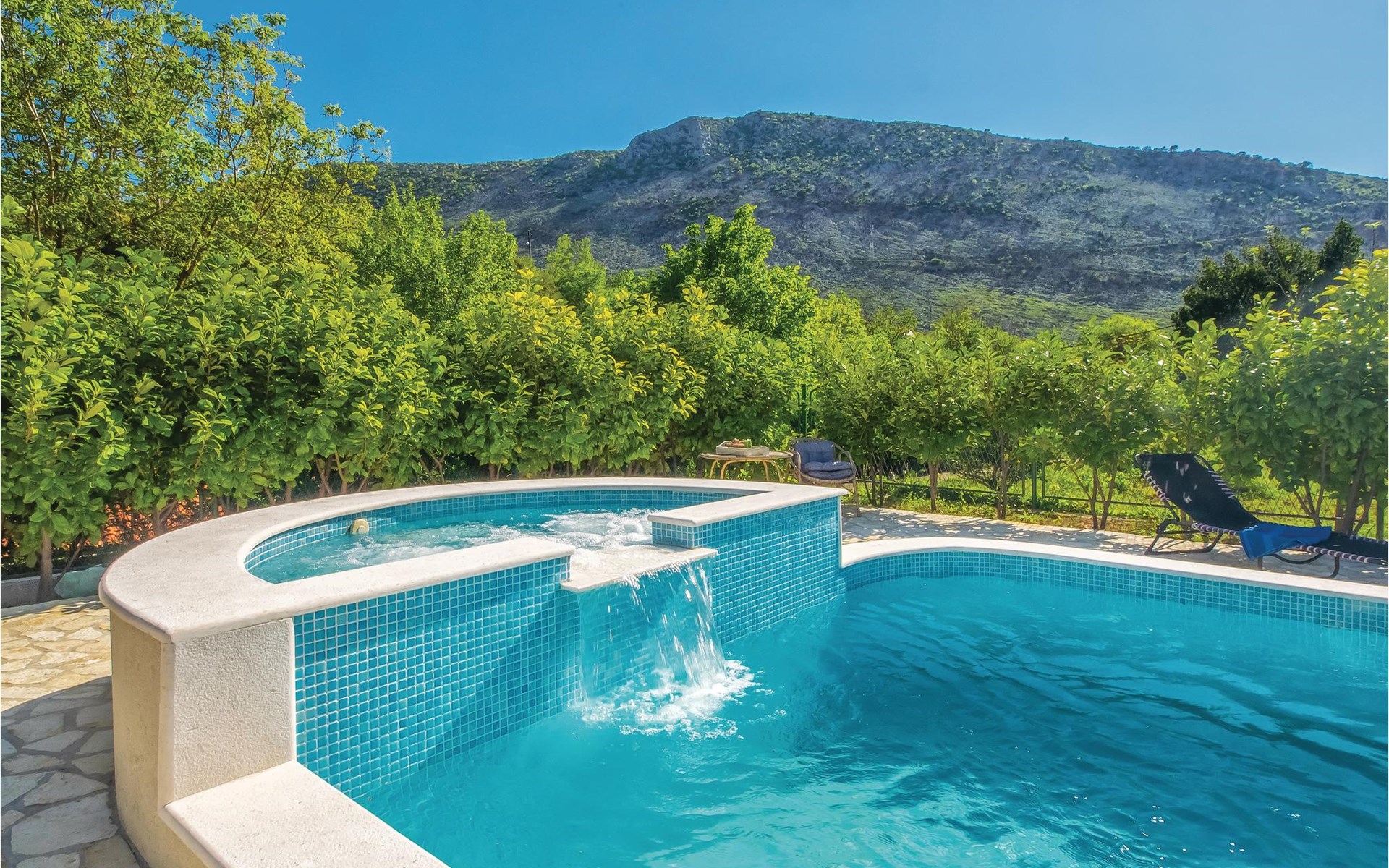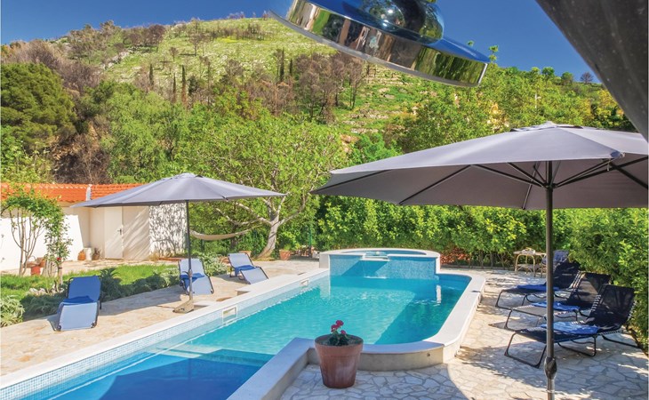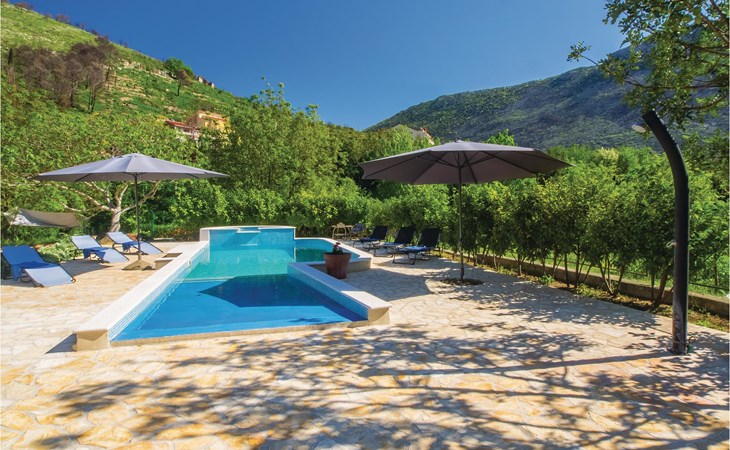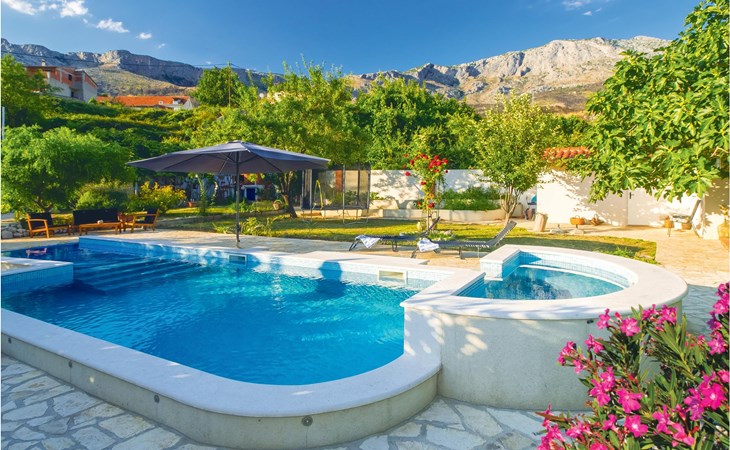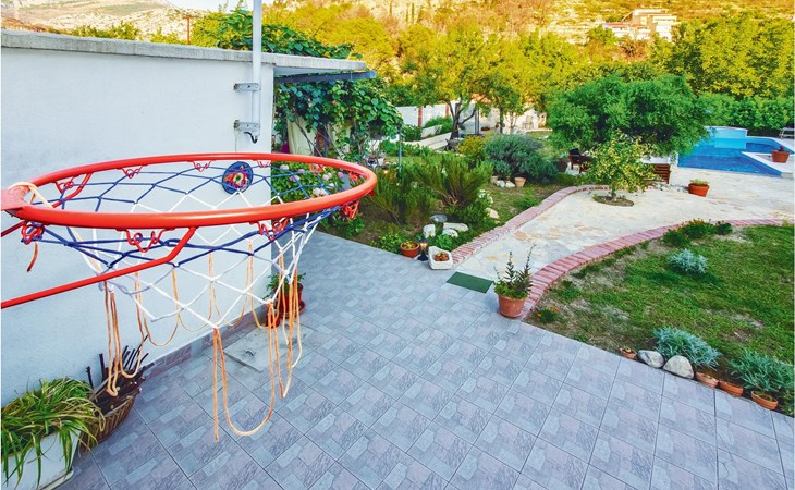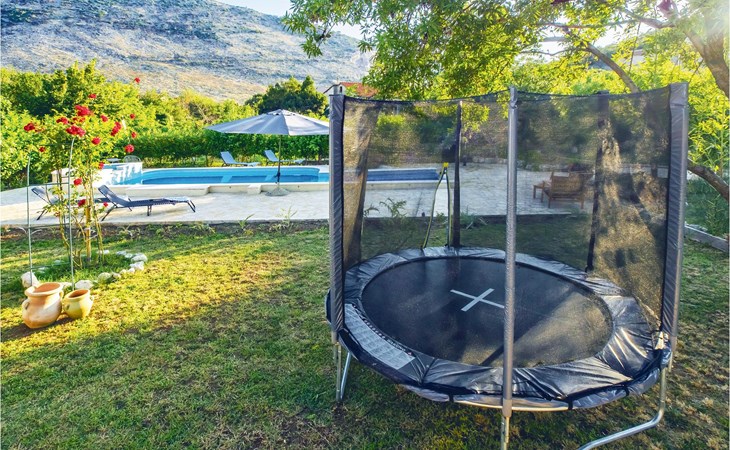 This simply furnished holiday home is located in the small village of rnovnica, at the foot of the Mosor mountain. The house on one level consists of two bedrooms, a kitchen-living room and a bathroom. Outside there is an enclosed garden with a pool, where you can spend many pleasant moments and where your children can play carefree. There is also a barbecue. Split, Croatia's largest coastal city, is just a few minutes' drive away.
