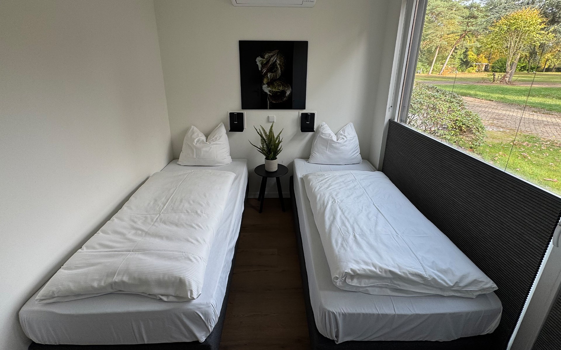 Die super Unterkunft in der Wald Lodge. Sehr tolle Betten, sehr schöne Einrichtung und nagelneu