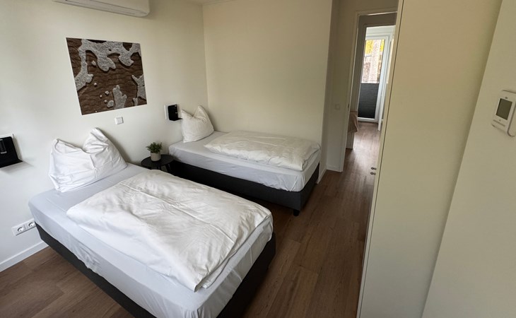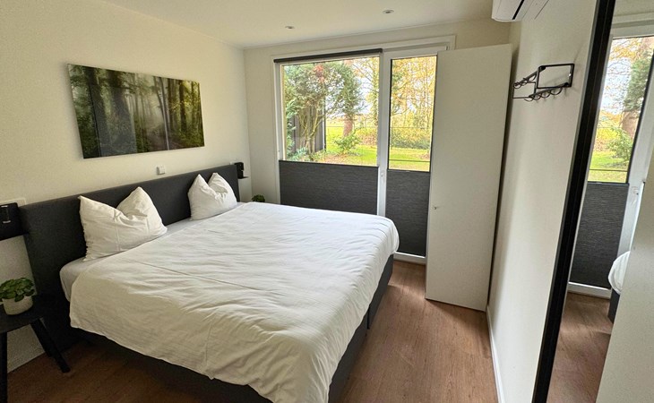 At 98 m², the Wald Lodge is an oasis of peace and luxury. The large living room is bright and tastefully decorated and equipped with comfortable seating, flat-screen TV, air conditioning and free Wi-Fi. The open kitchen is fully equipped with a combination microwave, 4-ring induction hob, fridge freezer, boiling water tap, Dolce Gusto coffee machine and dishwasher - ideal for long, cozy evenings together. The house has four comfortable bedrooms, two of which have a spacious 180 cm box spring. The three modern bathrooms and four toilets provide extra comfort and privacy for everyone. Outside, the large terrace invites long dinners in the evening sun or a coffee moment in the fresh morning air.