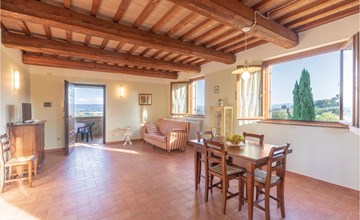 Discover the beautiful region of Umbria from this vacation apartment. It is located in a historic country house on a private property of 5 hectares, on a gentle hill above a beautiful valley with characteristic Umbrian villages. The house has been renovated and transformed into 4 spacious vacation apartments (IUP758, IUP759, IUP760 and IUP761), which can also be booked together for 16 sleeps with the house number IUP773. Enjoy the quiet location and panoramic views of the surrounding area. The pool are for communal use. Accommodation: 1st floor (80m²): Spacious living / dining room (TV), private staircase, down to a green area of about 200 m²; kitchenette, 1 double bedroom with bathroom with shower, 1 twin bedroom, 1 bathroom with shower (washing machine). Distances: 1.6 km grocery stores, 7 km Marsciano (stores of all kinds), 10 km Deruta (very famous for its pottery), 20 km Perugia, 30 km Assisi. The Umbria region with its mix of culture, tradition, unspoiled nature and gastronomic specialties is guaranteed to surprise you!