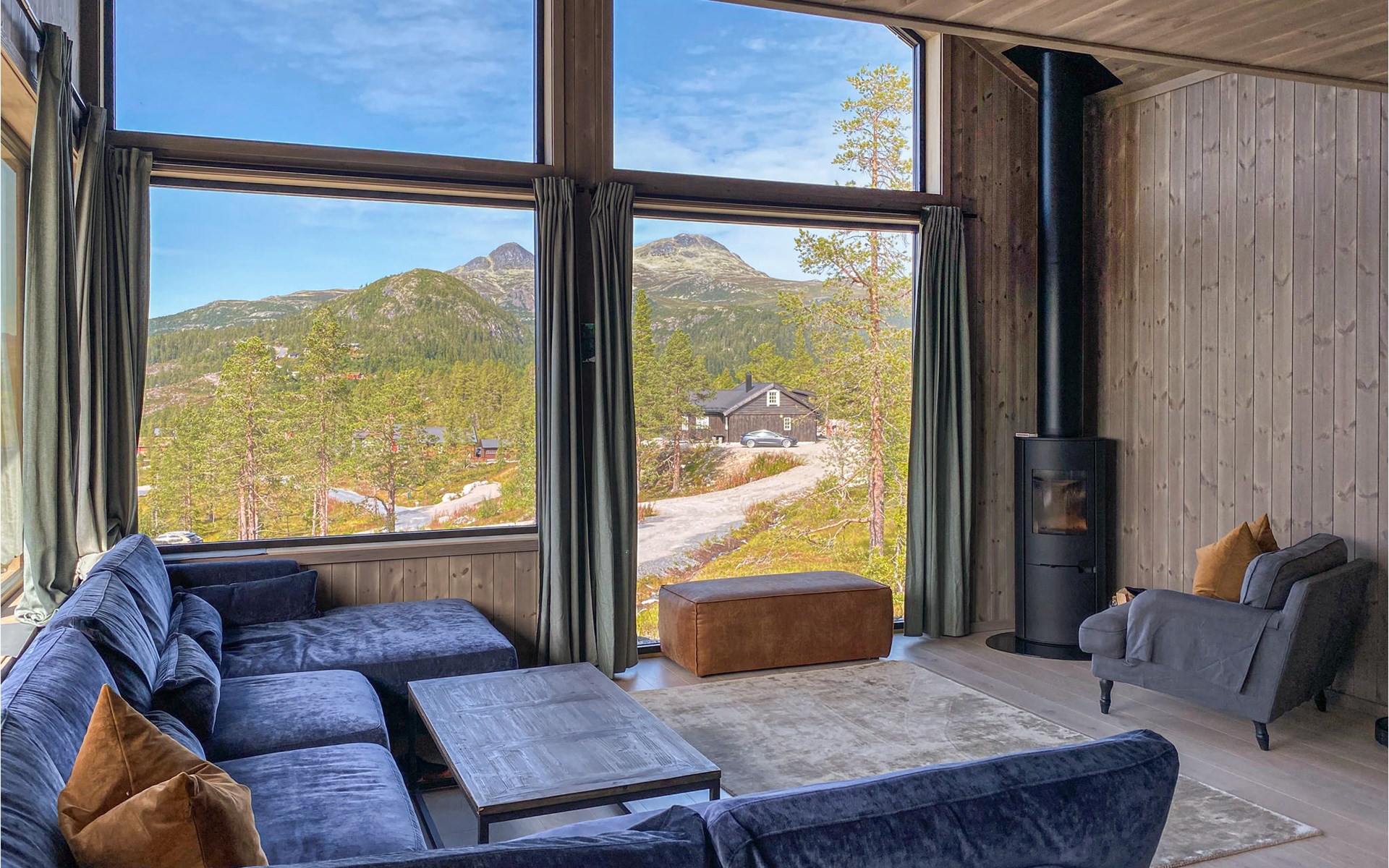 This vacation cottage in Tuddal is the ideal vacation spot for long or short hikes as well as fishing trips in the charming mountains of Norway. Here you can spend a top vacation with pure nature enjoyment. The large panoramic windows light up the house and invite the mountainous nature inside in the best possible way, creating a very special atmosphere. Plan your daily program in the morning at the dining table. What will you explore today? Put your feet up on the big sofa after a long day. Later you can work your magic together in the kitchen and enjoy homemade delicacies. End the day with a glass of wine on the terrace. Your children can romp around on the large natural plot.