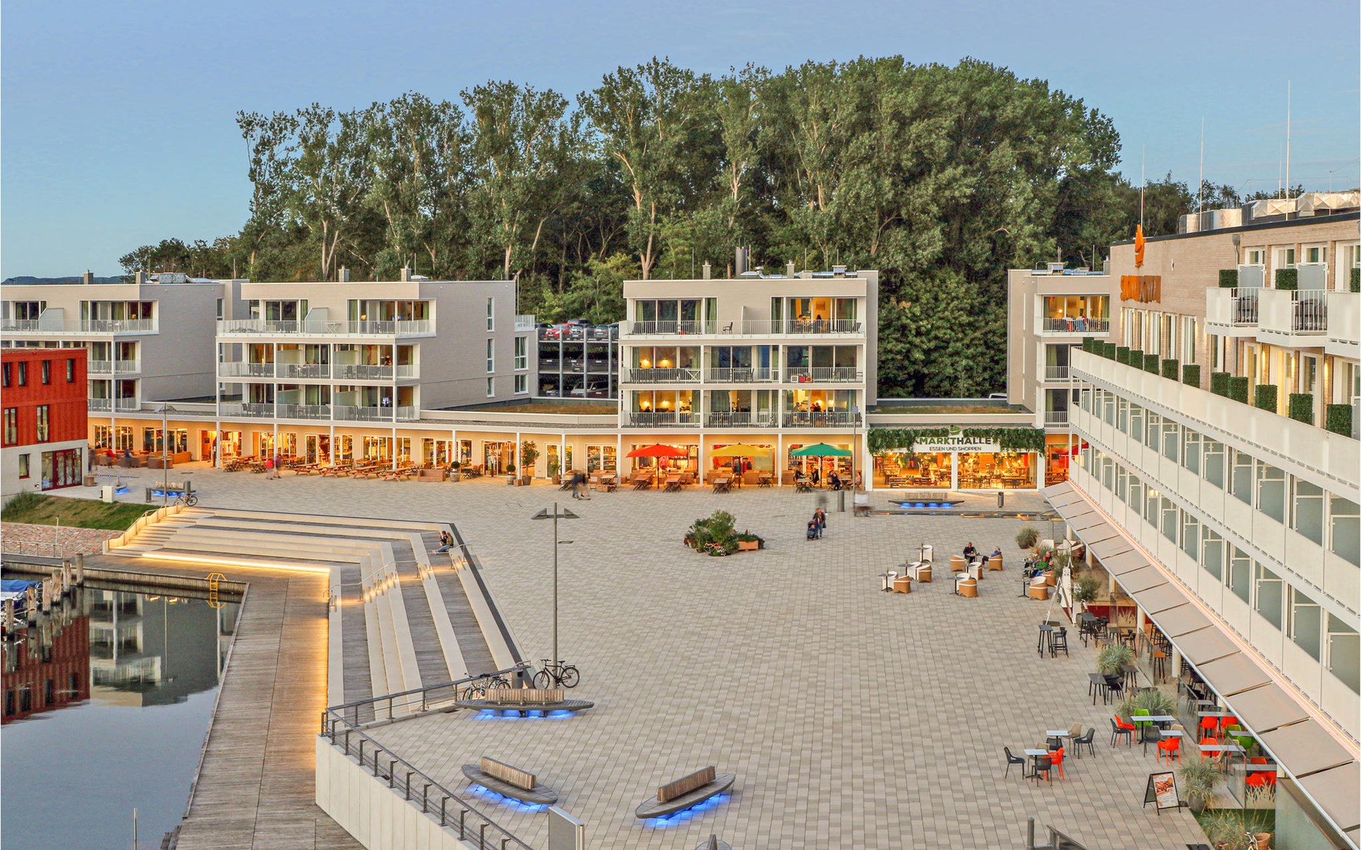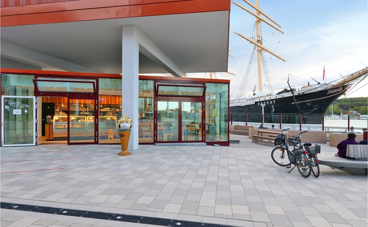 The BeachBay offers you both gastronomic variety and countless leisure activities. You will find restaurants and shops in the market hall. The Ahoi by Steffen Henssler restaurant is located directly on the waterfront, while other bars, cafés and an ice cream parlour on the promenade round off the offer. There are also playgrounds, a bicycle hire centre, the Ostseestation (aquarium and Baltic Sea exhibition) and the Passat museum ship for the whole family.