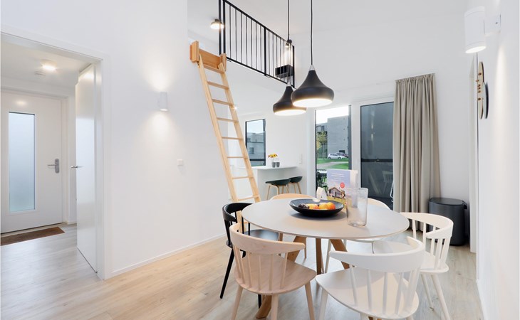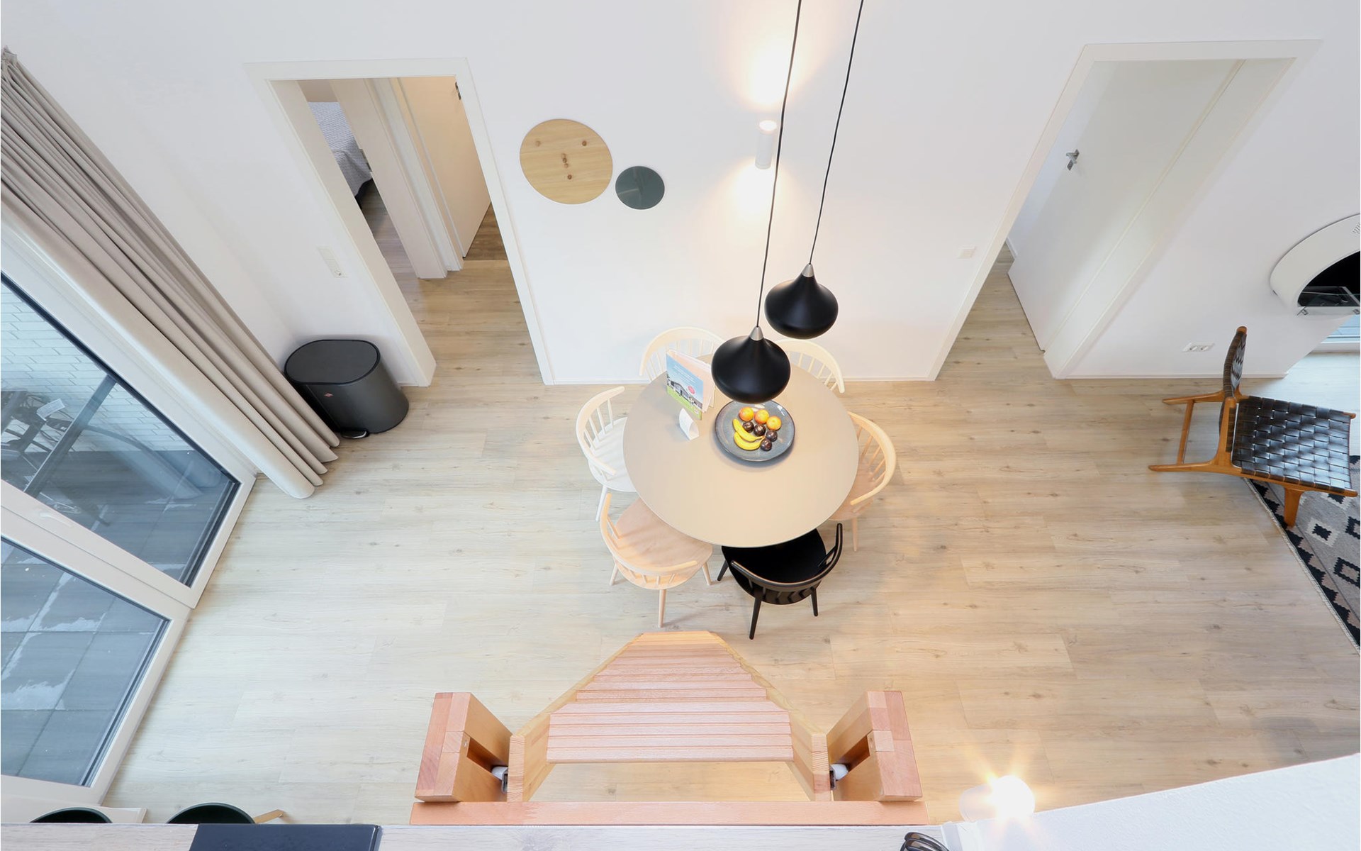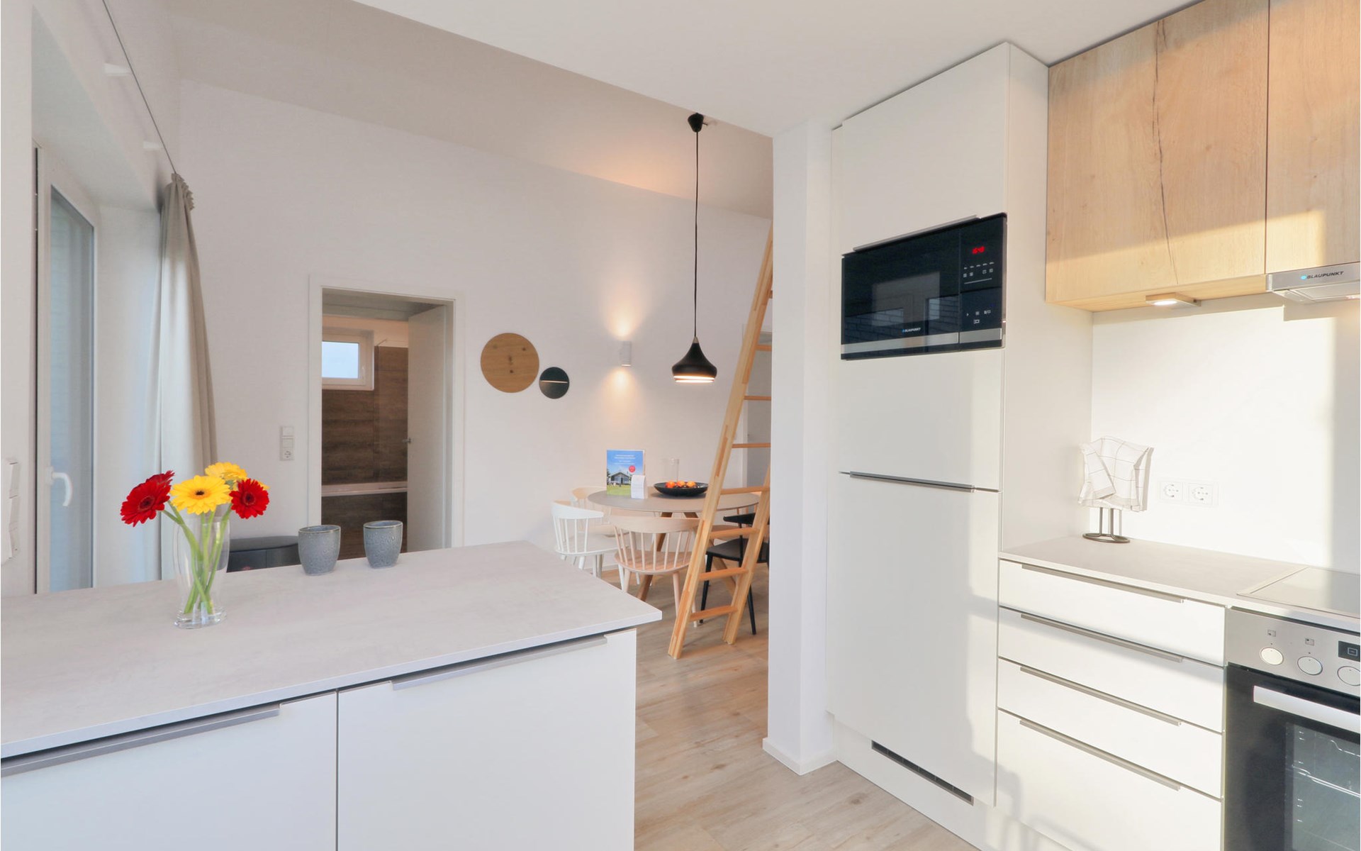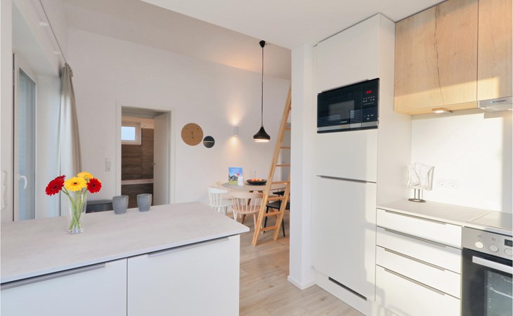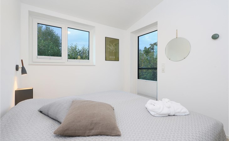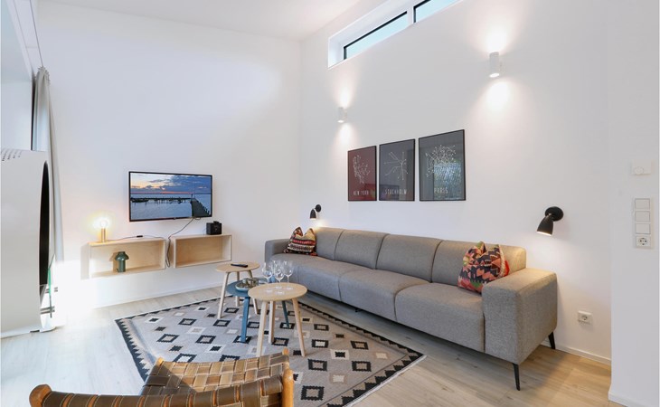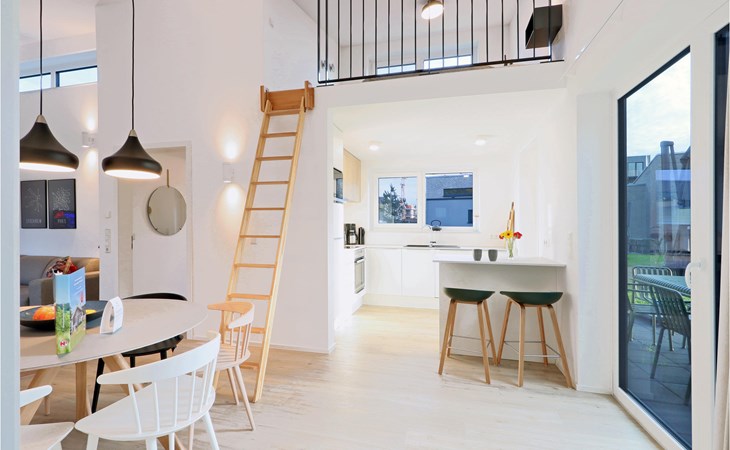Welcome to your holiday home, which offers you as a family with children or as a small group of friends a cosy, homely ambience with Scandinavian design furnishings. Two terraces for sitting and eating in the sun, the bio-fireplace and your own sauna leave nothing to be desired. The open-plan kitchen invites you to cook and linger. There is an open-plan bedroom on the gallery.