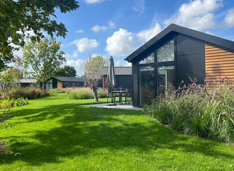 The simple, modern interior with its many small details creates a wonderful setting for your holiday in Holland. Lots of light and greenery await you here. Step out of the living room directly into nature and relax on one of the terraces surrounding the house. You can fully relax in the wooden bathroom. Wood is available at the reception, please fill and heat the wooden bath yourself.