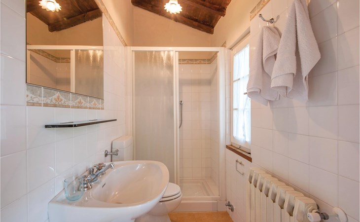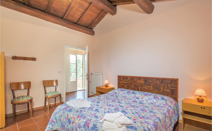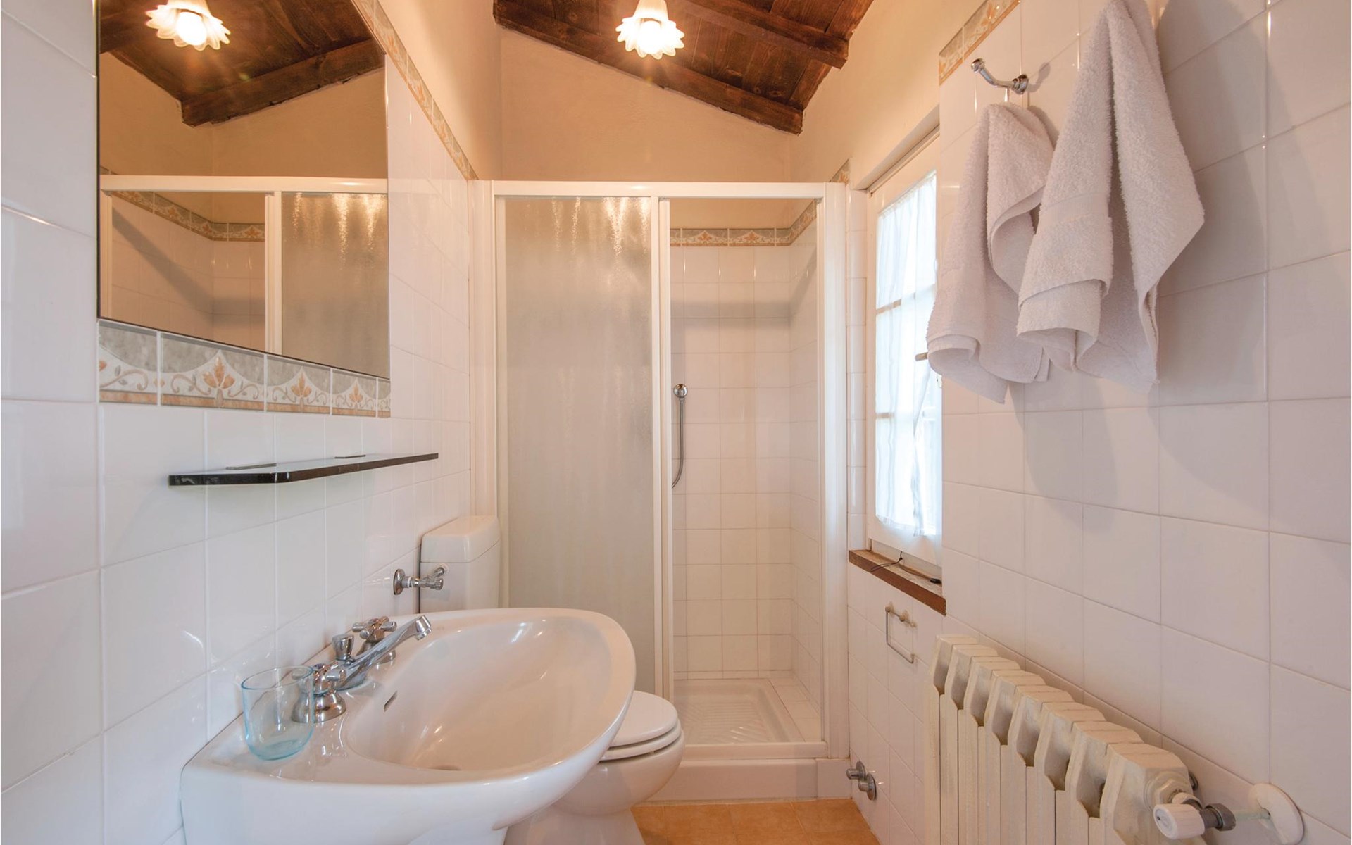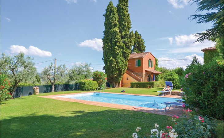 This friendly holiday home is located just outside Monte San Savino (1.5 km) in a slightly hilly position. The house is an outbuilding of a historic villa, surrounded by a park-like property with pool (shared with ITA902). You enter the large, bright living room via a private terrace; in the living room there is an open fireplace and the adjoining small kitchen, a spiral staircase leads to the 1st floor (which can also be reached via a comfortable external staircase). The functional kitchen area also has an exit to the garden. The bedrooms with bathrooms are on the 1st floor. Cot on request. Various garden seating areas are scattered around the property, so you can enjoy an espresso under a rose-covered pergola and a glass of wine in the shade of tall trees. The pretty little town of Monte San Savino, where you will find various bars, good restaurants and ice cream parlours, is also within easy walking distance for keen city trippers: Arezzo (20 km, also by train), Cortona 30 km, Siena 50 km and Florence 80 km. Monte San Savino offers a wide range of cultural events in summer, especially concerts in the rose garden; on Wednesdays there is a colourful market. Table football available in the communal area. The owner produces olive oil and wine of excellent quality using non-industrialised methods and respecting traditional techniques and methods. The wine is made from grapes of local varieties such as Sangiovese and the first press oil is given by local varieties (Moraiolo and Morelli). Guests can taste the products and visit the wine cellar and take part in the harvest in the last days of September.
