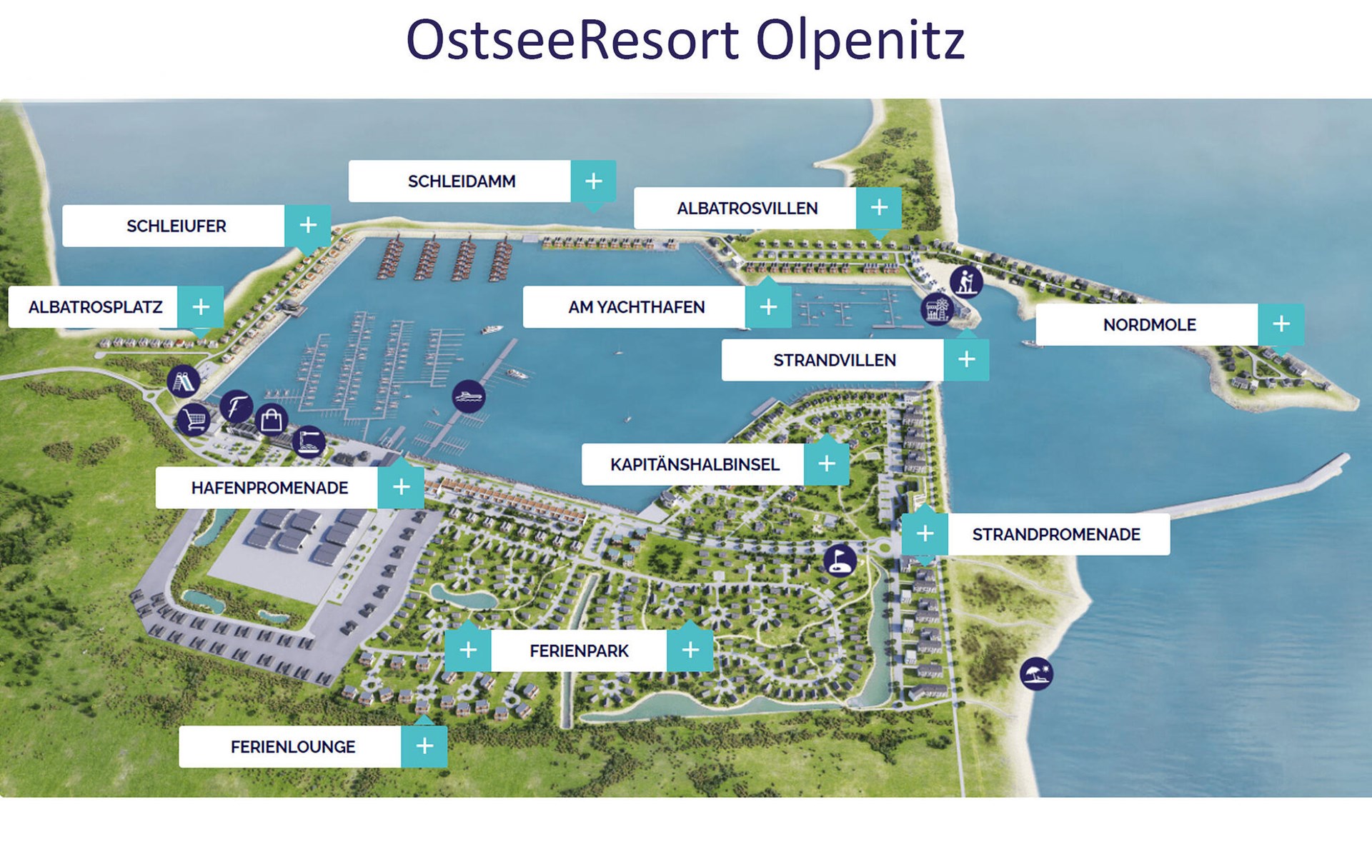 The new holiday home area is currently being built on the former naval site in the OstseeResort Olpenitz on more than 150 hectares, embedded in nature. Please note that fishing in the harbour basin is not permitted.