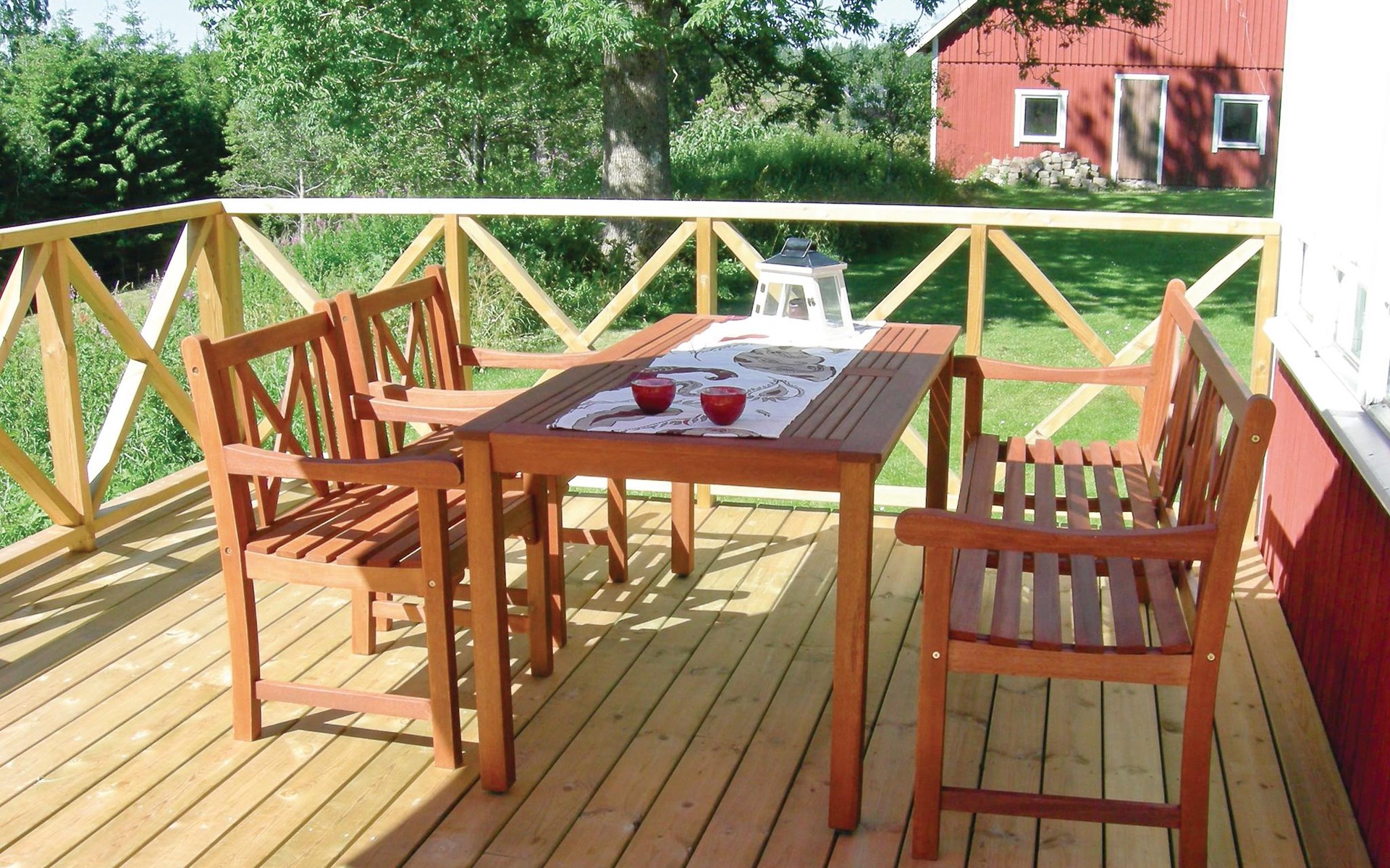Cozy cottage with open floor plan and large terrace. A steep staircase leads to the upper floor where there are two bedrooms. The bedrooms are not separated by wall or door. Safety gate for the stairs is available. From the glass veranda you look out over the countryside. Trampoline, swings and slide shared with S06443. 2 km to the lake Storsjön. Also visit the beautiful wooden town of Eksjö 25 km away. The recreation area Lövhult, outside Nässjö is 22 km away. There are lighted fitness trails there. In winter you can do good sports here with cross-country skis. Cross-country trails are 3, 5 and 10 km long. In summer you can find 4 golf courses within 30 km. It is 32 km to the moose park Vrigstads.