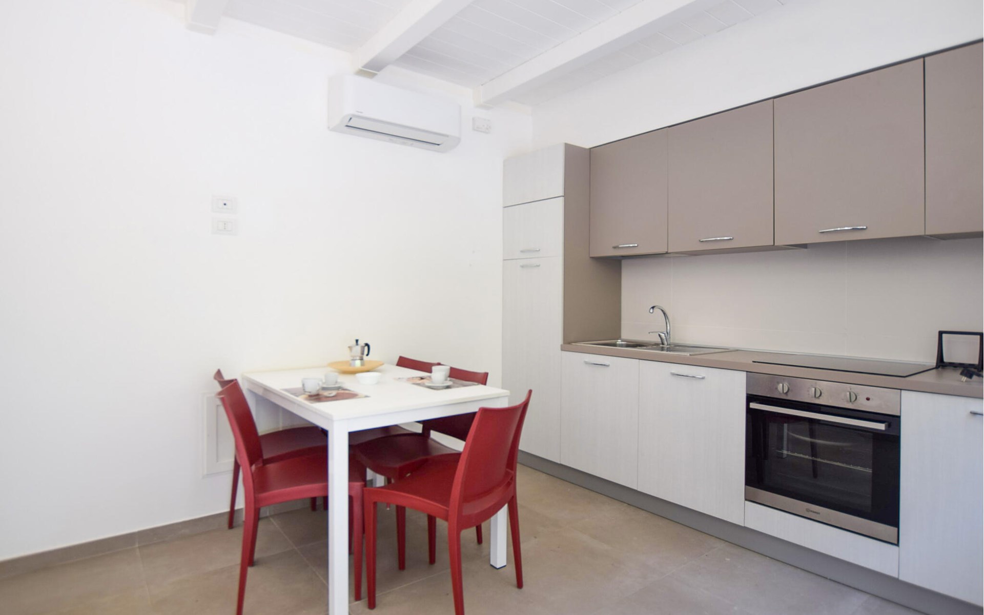 Welcome to this modern and stylishly furnished holiday home, where you can enjoy a romantic break as a couple or as a small family just a few steps from the beach. Conjure up Mediterranean dishes in the modern kitchen and enjoy them at the inviting dining table. Treat yourself to relaxing siestas on the cosy sofa and let the pleasant sea breeze flow through the rooms.