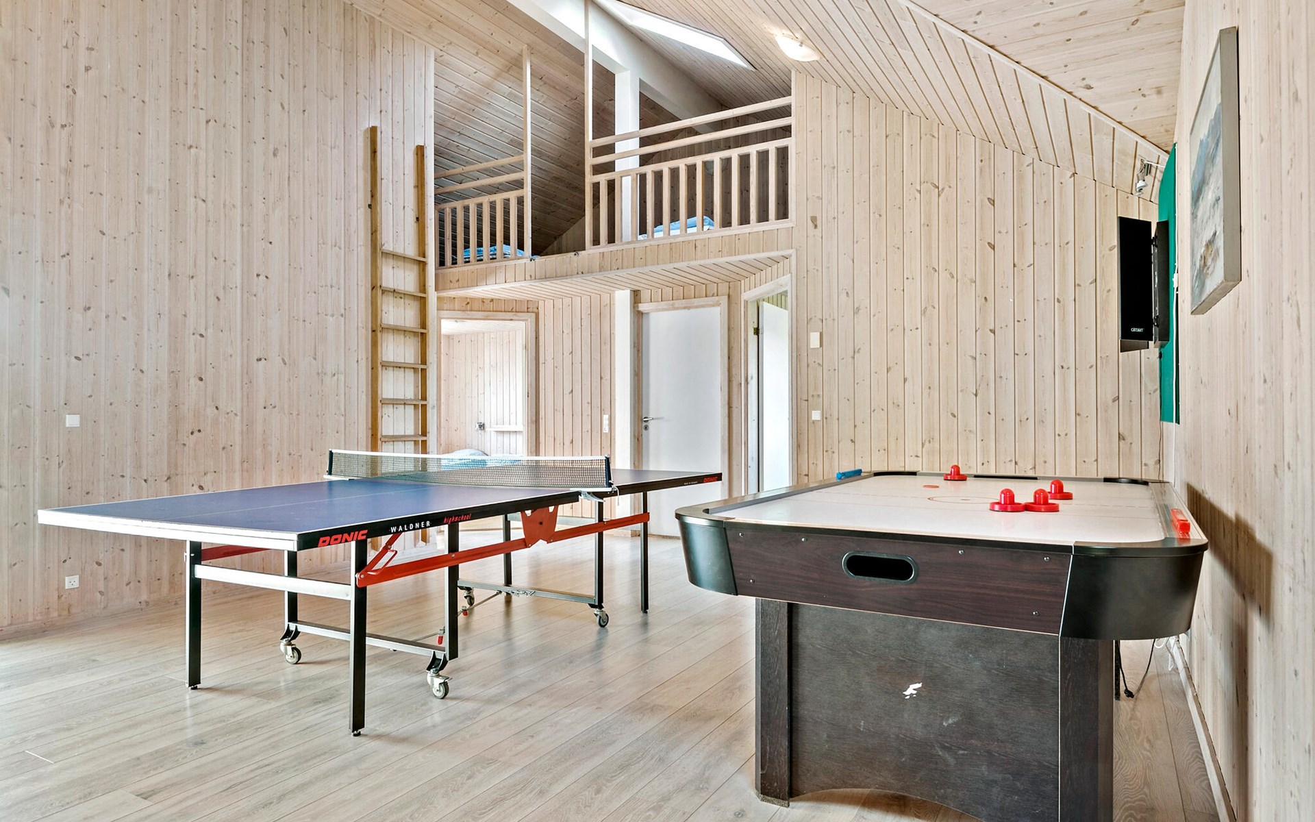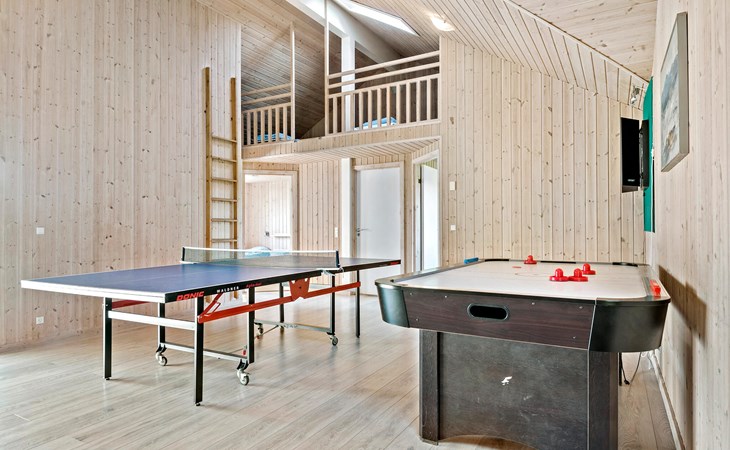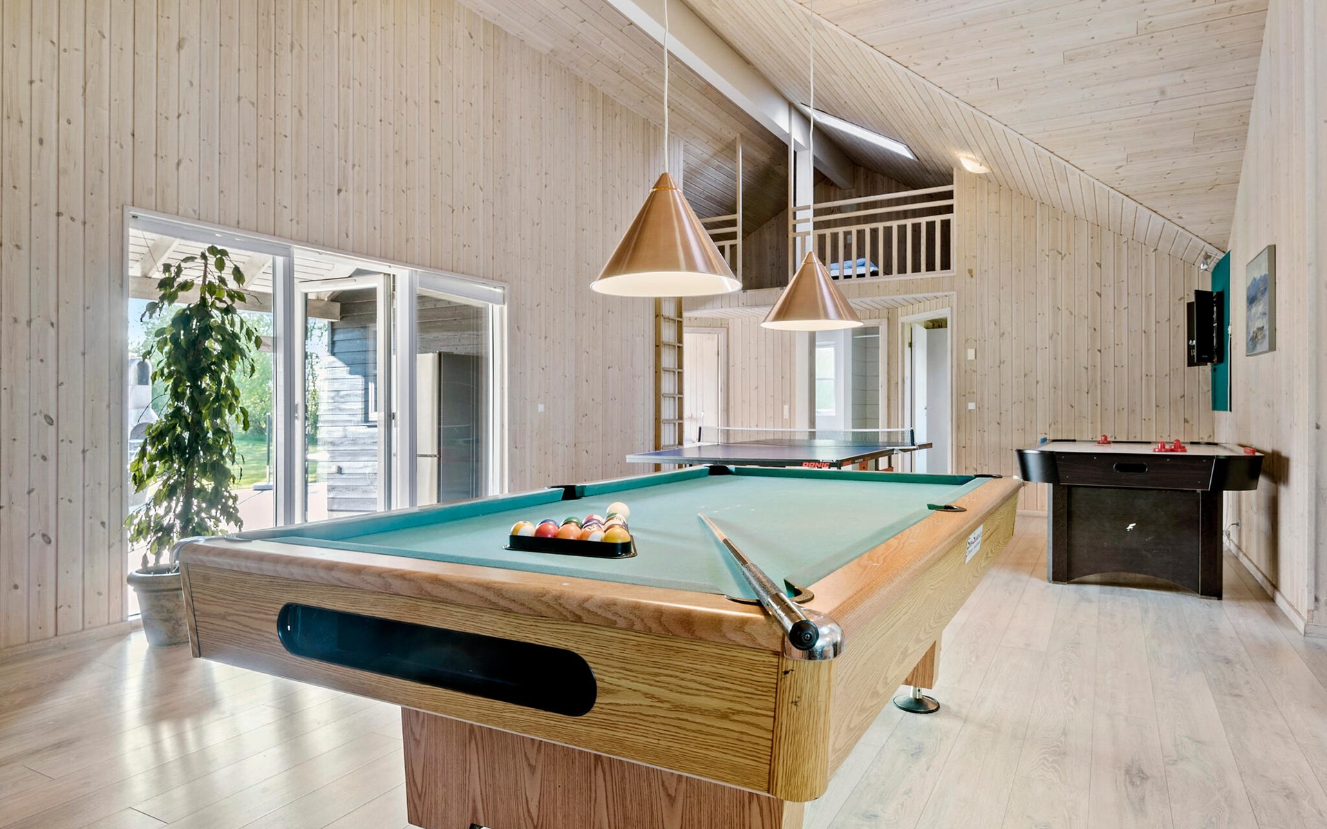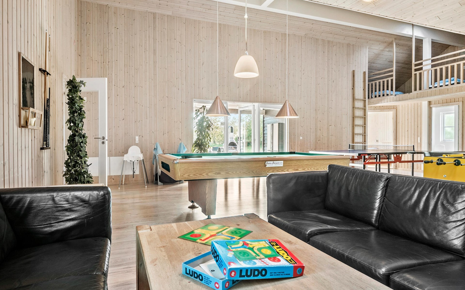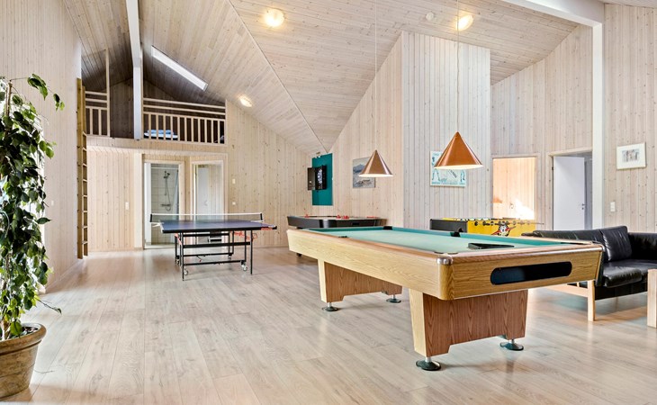 If you are looking for a vacation home in an attractive location with plenty of space, then this beautiful house in Marielyst on the island of Falster may be the one for you. With numerous activity options and plenty of sleeping space, this vacation home is ideal for large groups or several families who want to vacation together. Start the day with breakfast together. There is plenty of space to cook in the modern kitchen, and you can have lively conversations about the day's plans at the long dining tables. The stylish interiors create an inviting atmosphere in which you can feel at home. You can also organize tournaments here, such as billiards, table tennis or air field hockey, and then relax in the pool and whirlpool.