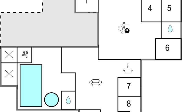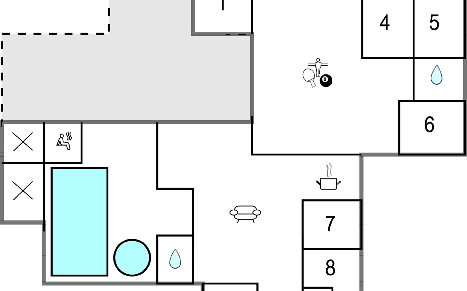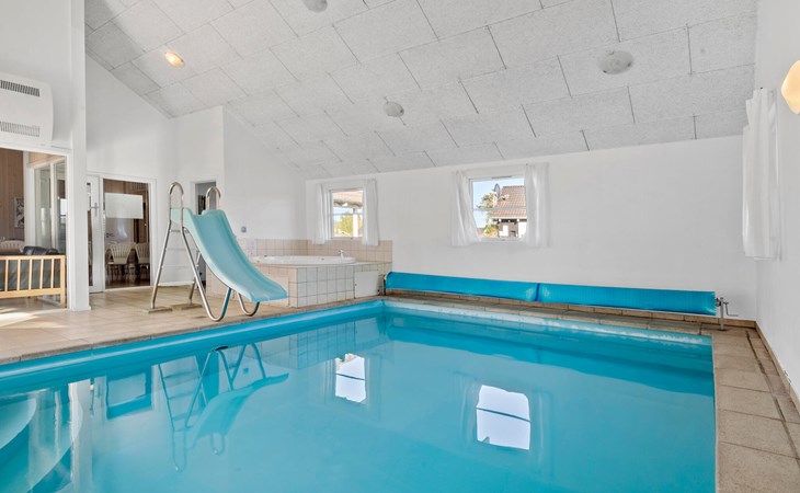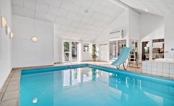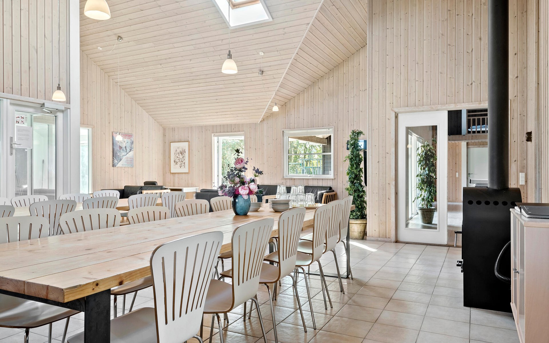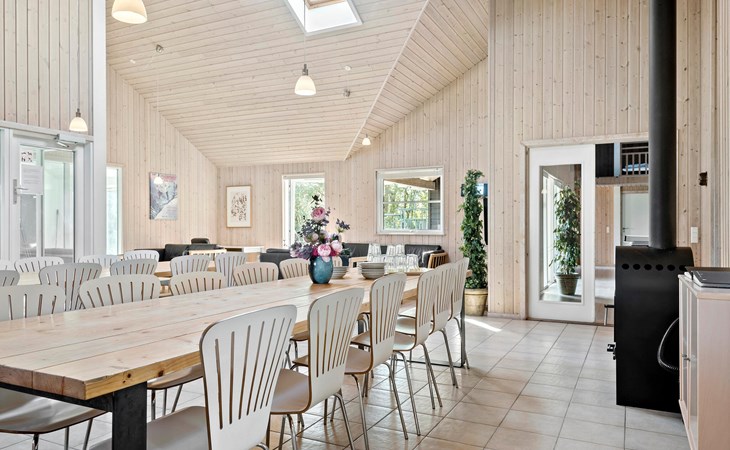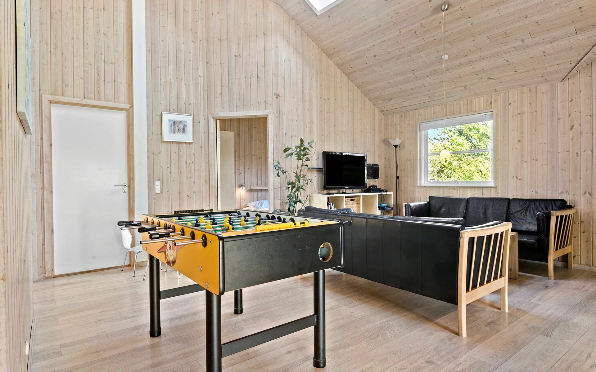 If you are looking for a vacation home in an attractive location with plenty of space, then this beautiful house in Marielyst on the island of Falster may be the one for you. With numerous activity options and plenty of sleeping space, this vacation home is ideal for large groups or several families who want to vacation together. Start the day with breakfast together. There is plenty of space to cook in the modern kitchen, and you can have lively conversations about the day's plans at the long dining tables. The stylish interiors create an inviting atmosphere in which you can feel at home. You can also organize tournaments here, such as billiards, table tennis or air field hockey, and then relax in the pool and whirlpool.