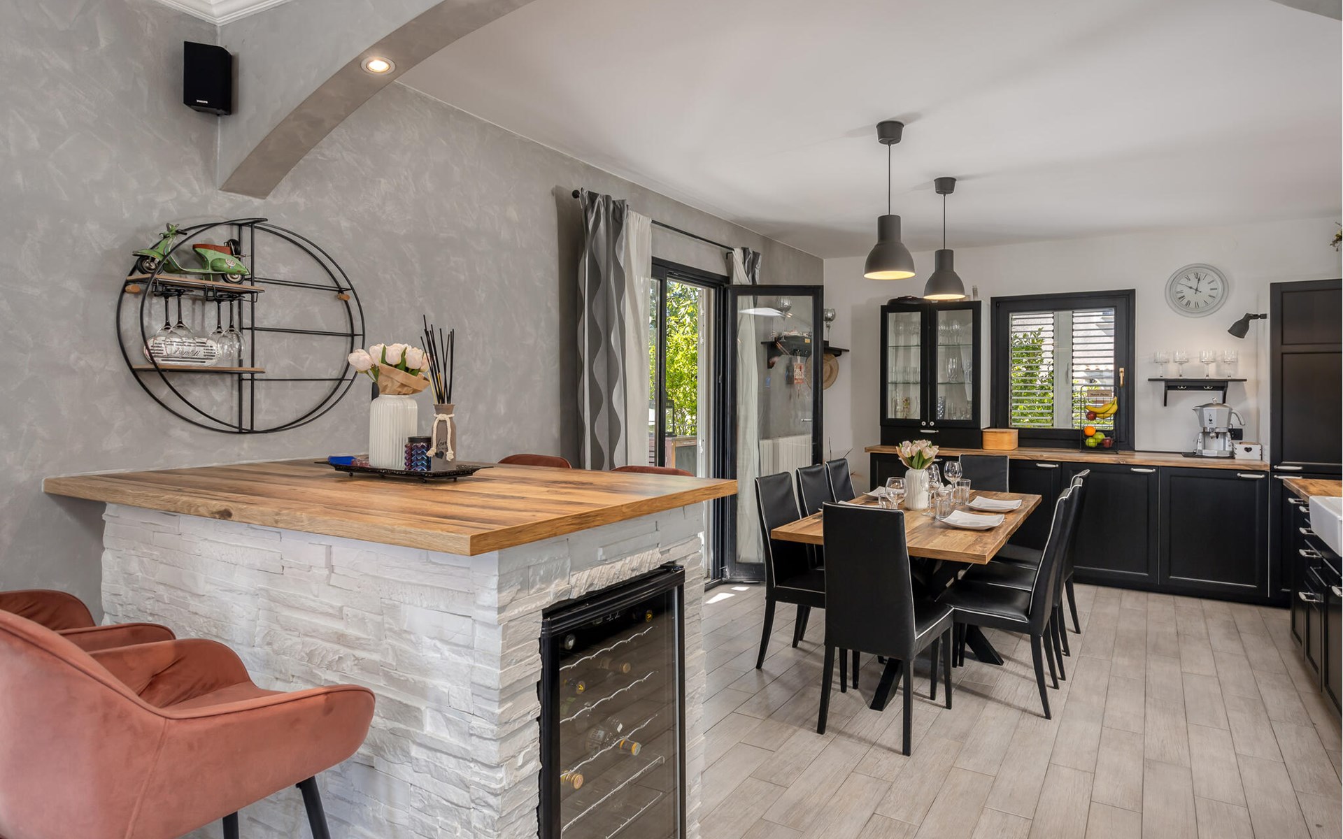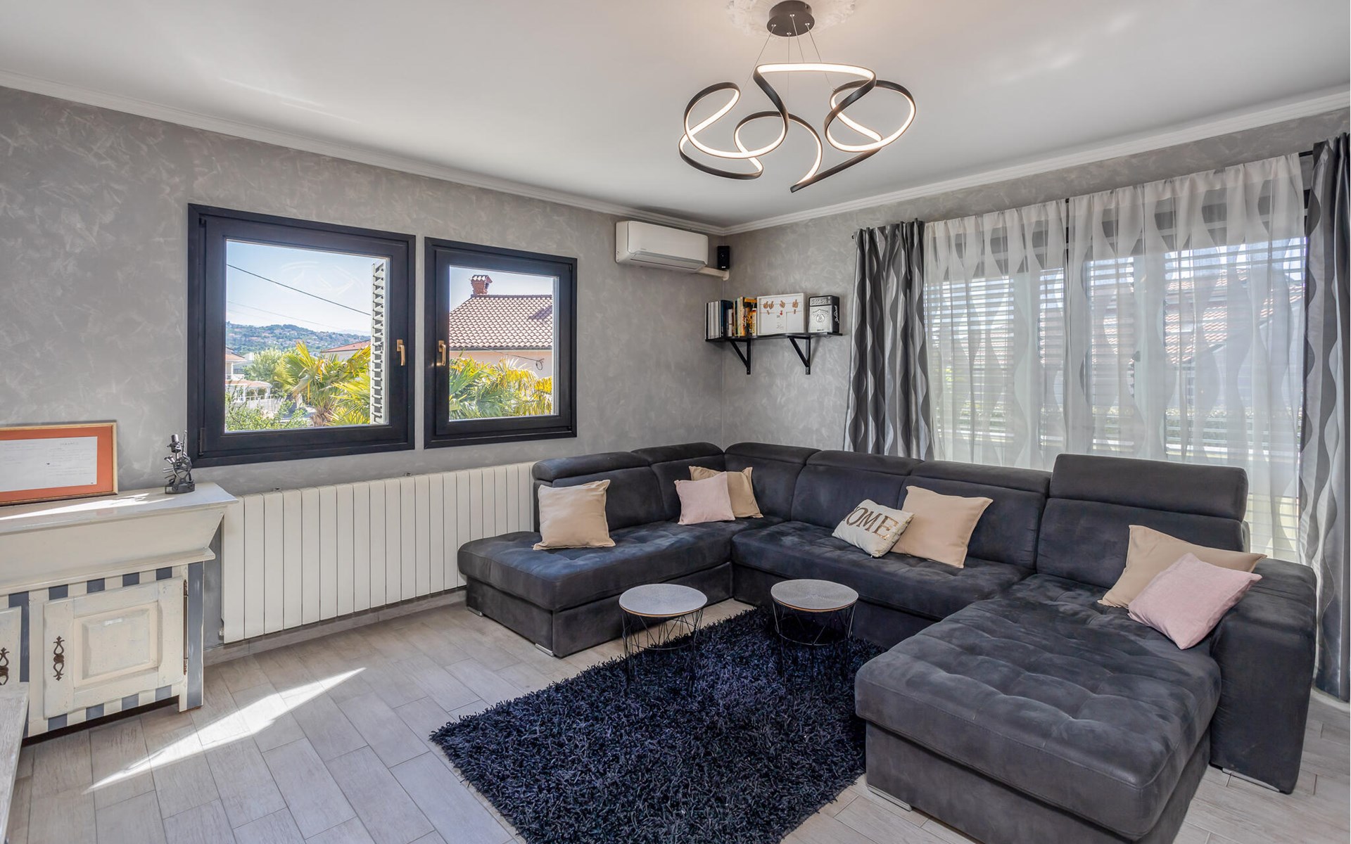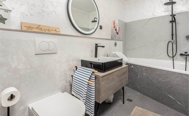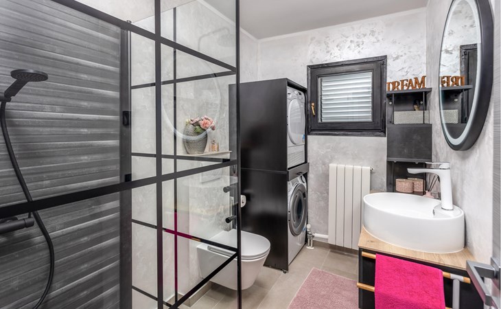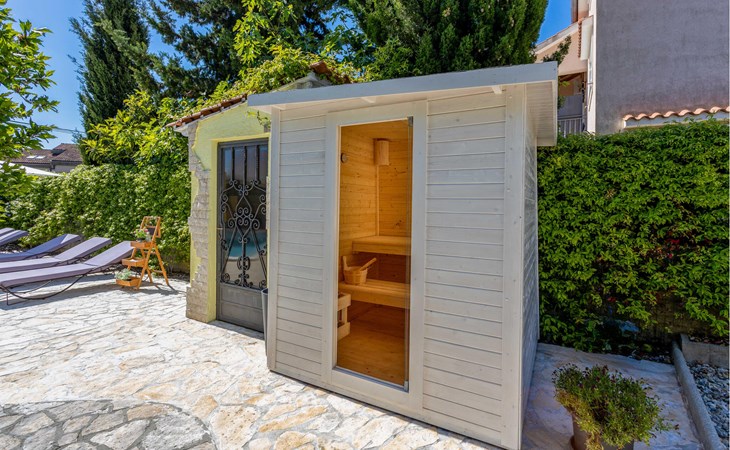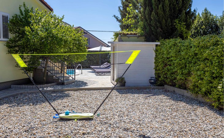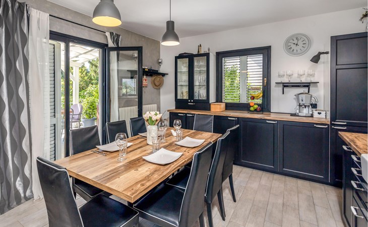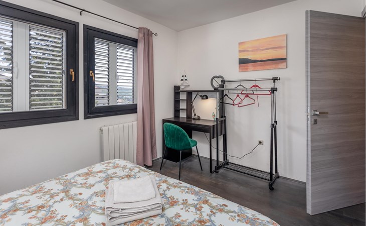 This cosy holiday home is located in the quiet village of Pobri, just above the town of Opatija. On the ground floor is the living room with kitchen and dining area, while upstairs there are three bedrooms and a bathroom. Behind the house, on the fenced plot, is the garden terrace with barbecue and the outdoor pool. The whirlpool is located in a part of the pool where you can enjoy the hydromassage. The picturesque town beaches of Opatija, Iii and Volosko can be reached in about ten minutes by car. However, if you want to spend some time exploring the area, then drive along the coast where you can visit beautiful little towns such as Lovran, Medveja and Moenika Draga. Opatija offers many events, especially in the summer months. We recommend evening strolls along the Lungomare promenade, where you can sample fish specialities on the open terraces of the restaurants.