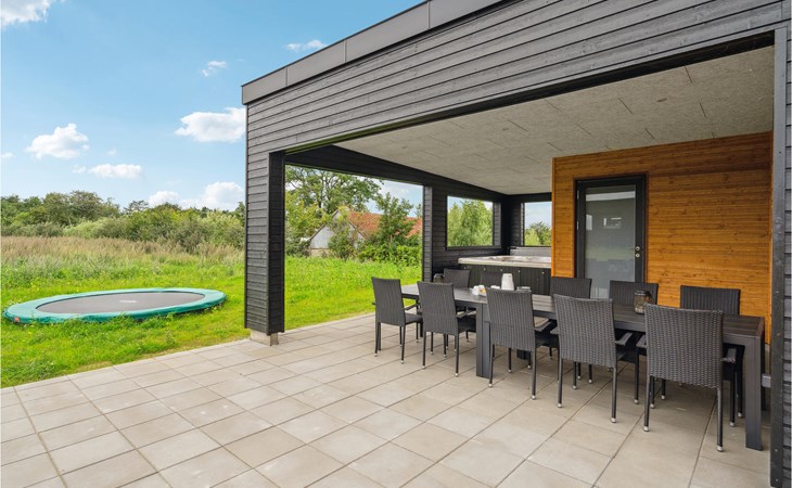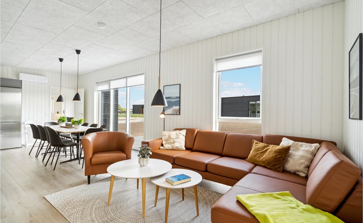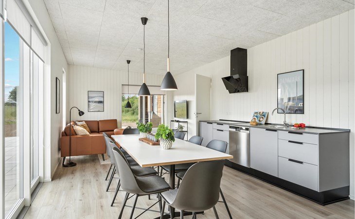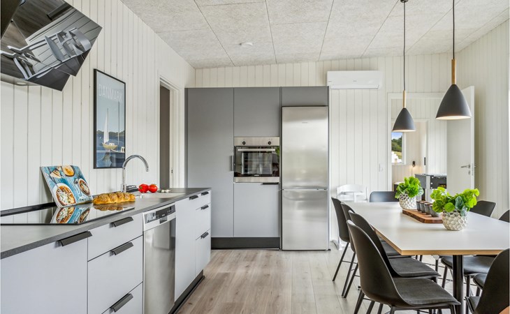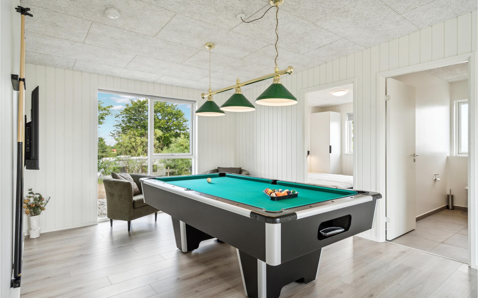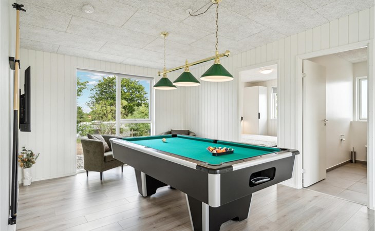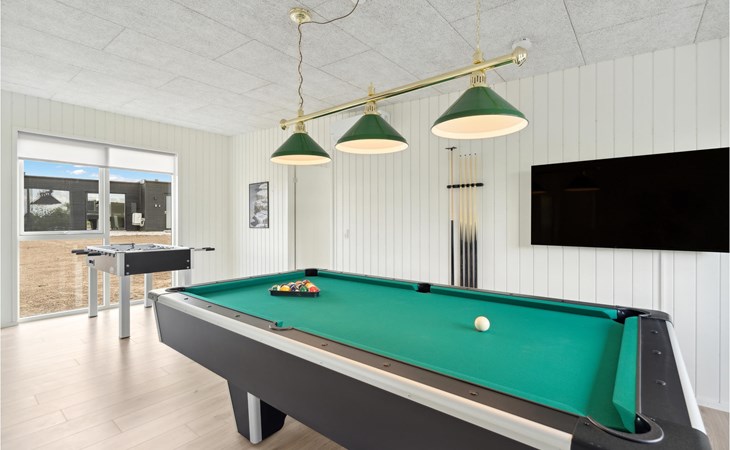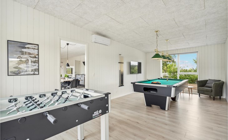 In a wonderful location, surrounded by nature and close to the fjord, this exceedingly comfortable vacation home with space for the large family awaits you. The attractive interior with modern furniture creates a cozy feel-good atmosphere in the rooms. Enjoy meals together with a view of the garden through large panoramic windows and then get the circulation going again with a game of billiards. At the end of a wonderful day, make yourself comfortable together in the living area and chat late into the evening.