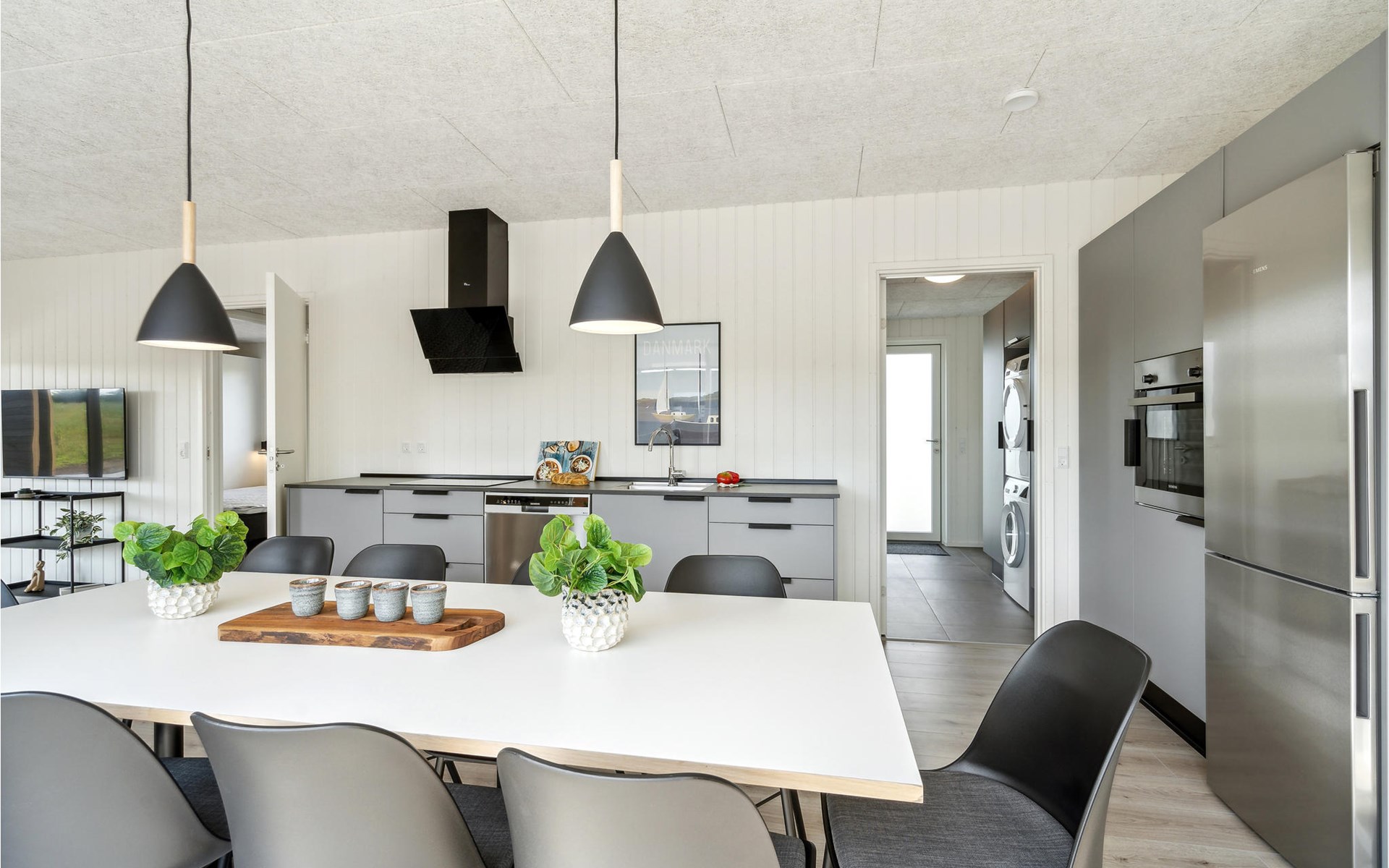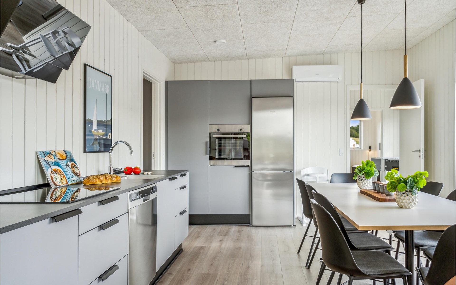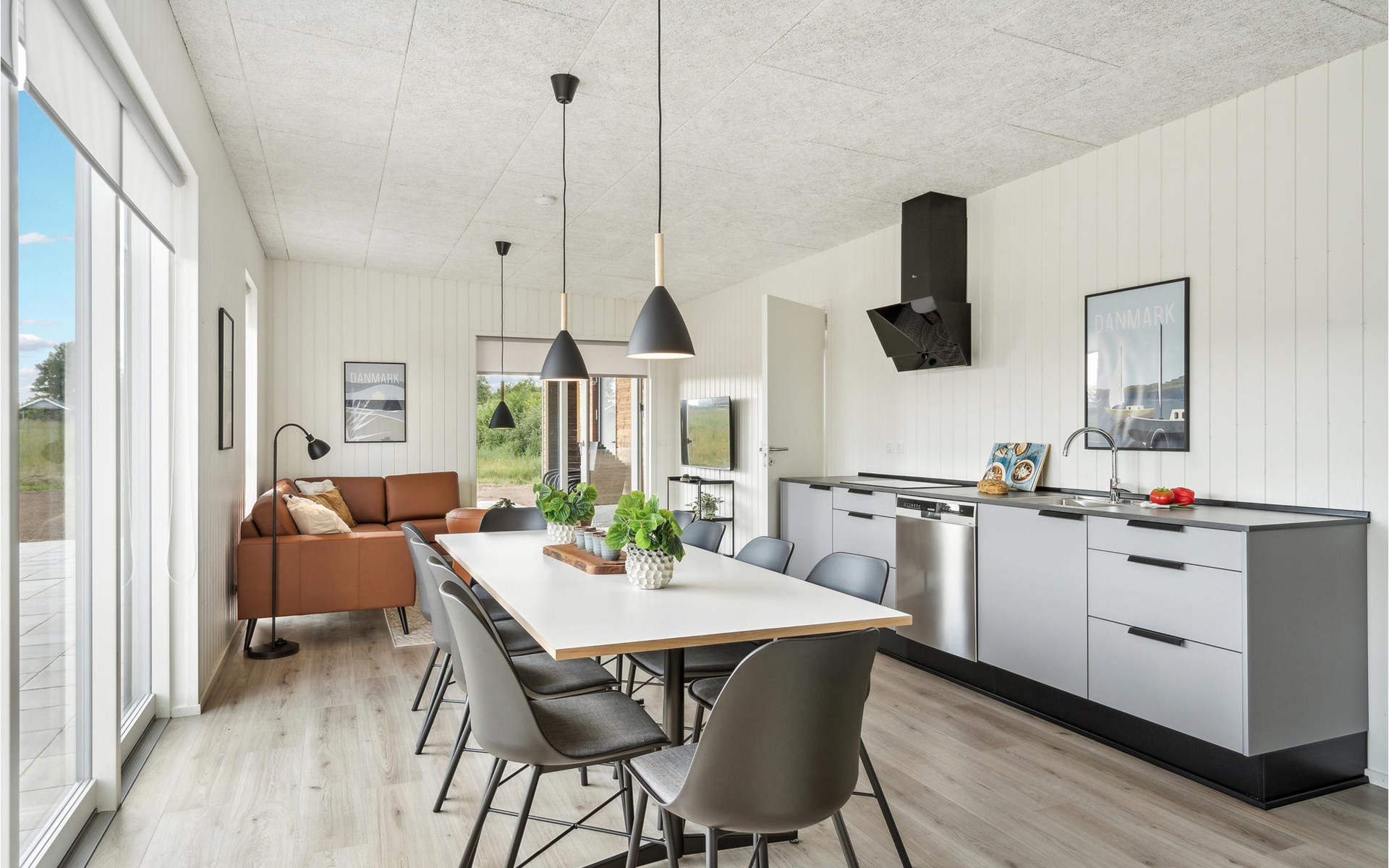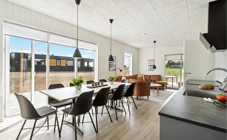In a wonderful location, surrounded by nature and close to the fjord, this exceedingly comfortable vacation home with space for the large family awaits you. The attractive interior with modern furniture creates a cozy feel-good atmosphere in the rooms. Enjoy meals together with a view of the garden through large panoramic windows and then get the circulation going again with a game of billiards. At the end of a wonderful day, make yourself comfortable together in the living area and chat late into the evening.