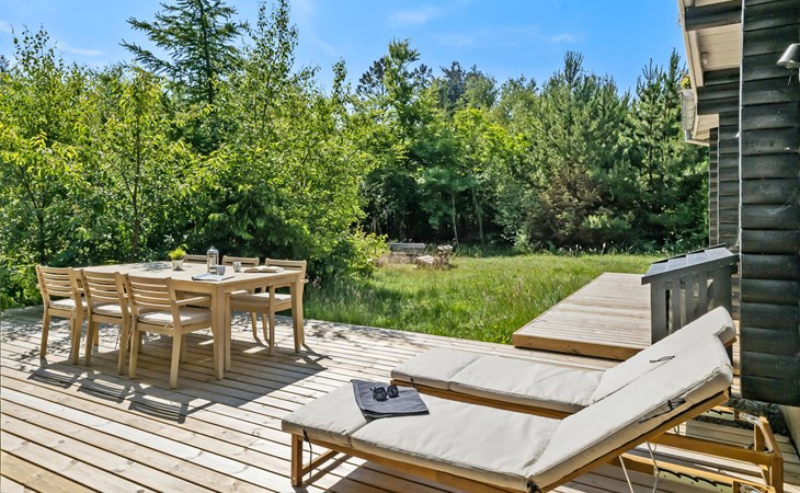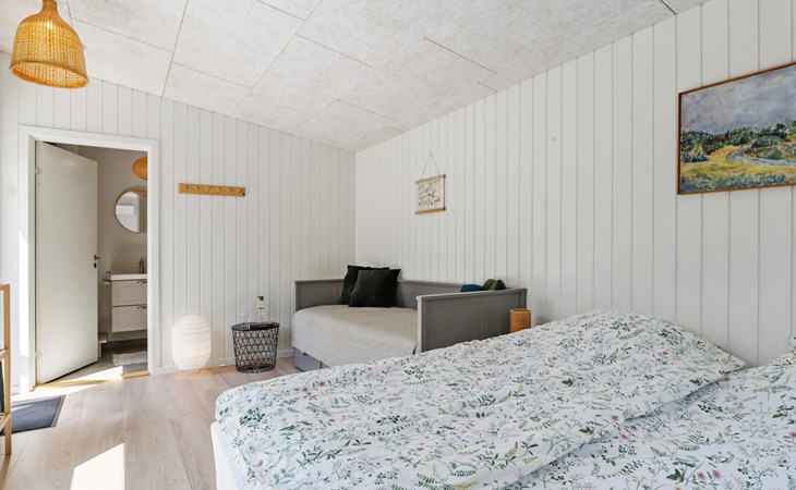 This idyllic vacation home welcomes you to the quiet Lundø peninsula. The many wooden elements of the interior create an atmospheric impression and provide the ideal conditions for a relaxing vacation. Spend cozy hours with your loved ones playing board games or watching a good movie and, on chilly days, curl up in an armchair with your favorite book while listening to the crackling fire in the wood-burning stove.