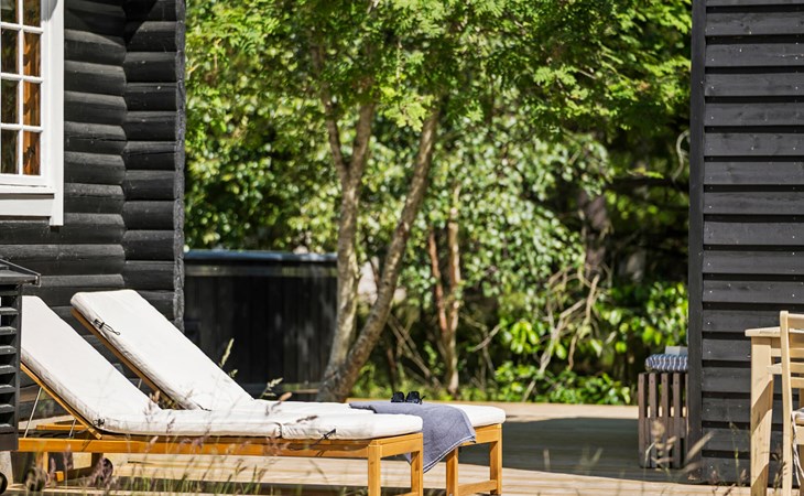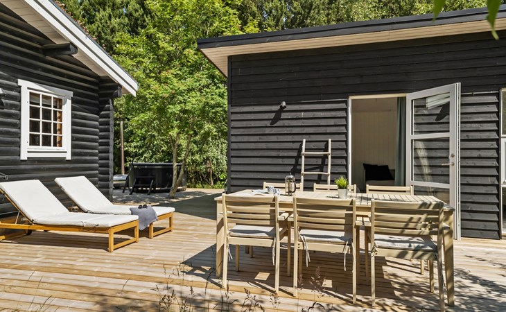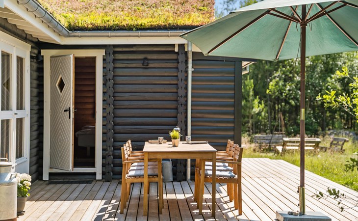 During the day, the little ones will play safely on the natural grounds, and when you return from the sandy beach or simply want to cool off on hot days, you will also find an outdoor shower. Spend enchanting summer evenings on the terrace and round off a beautiful day in the Finnish wooden bath.