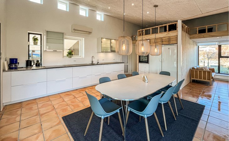 The spacious living rooms with cosy furnishings offer you and your family plenty of room to relax. Open sleeping lofts create a cosy and airy atmosphere, while the well-equipped kitchen invites you to cook together. Several terrace areas around the house offer you the opportunity to enjoy the sun or spend cosy meals outdoors. The proximity to the beach makes this house a perfect retreat for relaxing days.