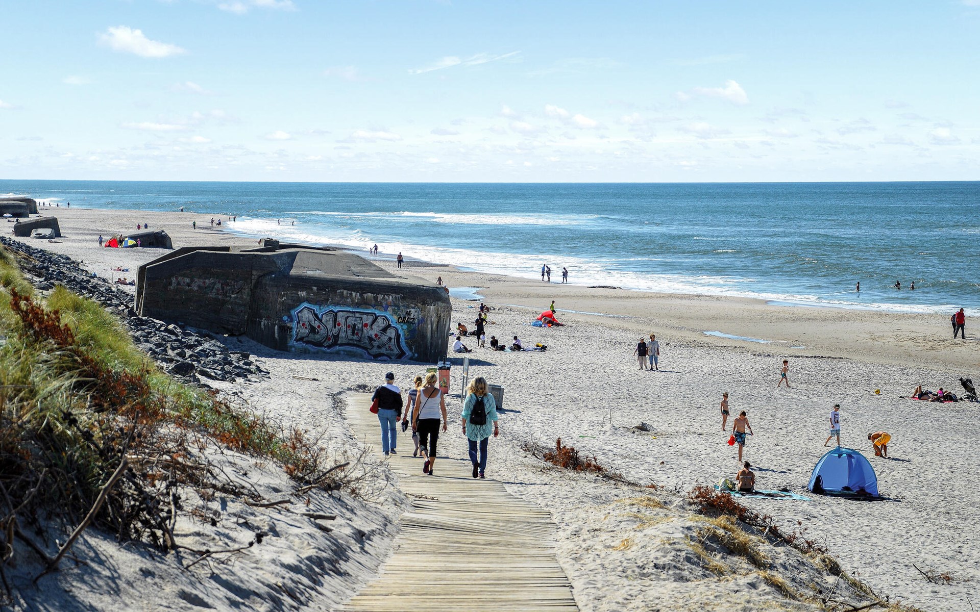 The west coast of Denmark is the vacation destination for those who are looking for an active vacation with a variety of offers. The beaches, dunes and the enchanting nature of West Jutland are the ideal starting point for unforgettable experiences. Especially the old trading town Ringkøbing "the town with the red roofs" is worth a visit. In the evening you can walk through the town with the night watchmen and enjoy the very special atmosphere of this town surrounded by the beautiful old houses. Or you can go to Hvide Sande with the lock that connects the North Sea and Ringkøbing Fjord. Also visit the fishing museum "Fiskeriets Hus" and experience the vibrant life in the fishing harbor. From Ringkøbing Fjord it is also not far to the famous Legoland or the lion park of Givskud.
