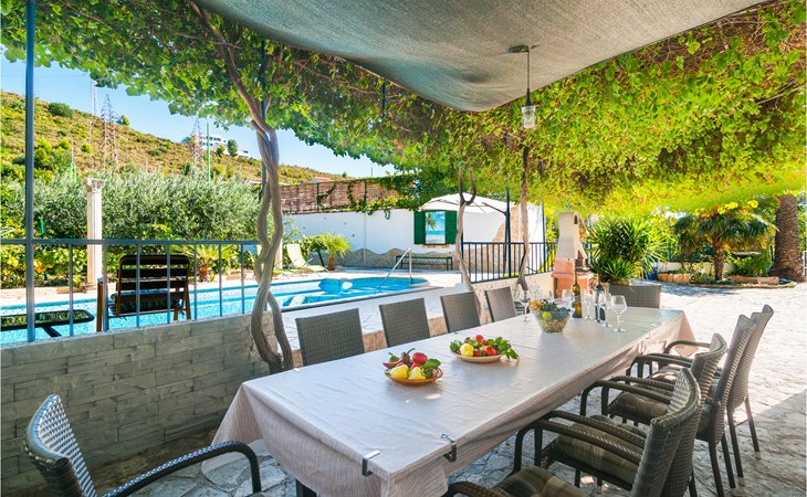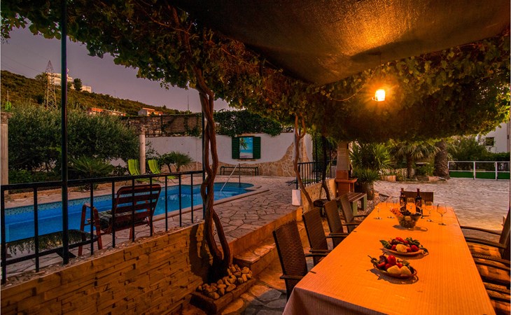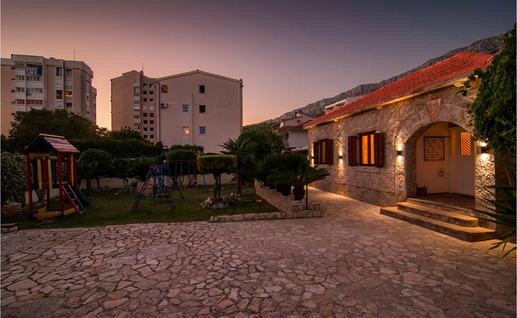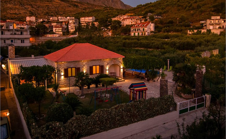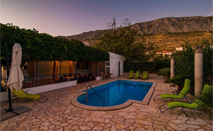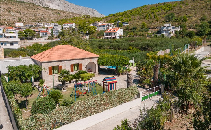 The simple but with great attention to detail furnished vacation home is located in a small village near the sea. The enclosed natural plot with its playground equipment offers an ideal condition for a relaxing family vacation. In the summer months, the pool offers welcome refreshment. The nearest sandy beach can be reached after about 1km. On the property there is a konoba, which can be used in the presence and after consultation with the owner. In the restaurants in the immediate vicinity you can taste the culinary delights of the country. Visit Omis with rich leisure content as well as the city of Split with its beautiful Diocletian's Palace.