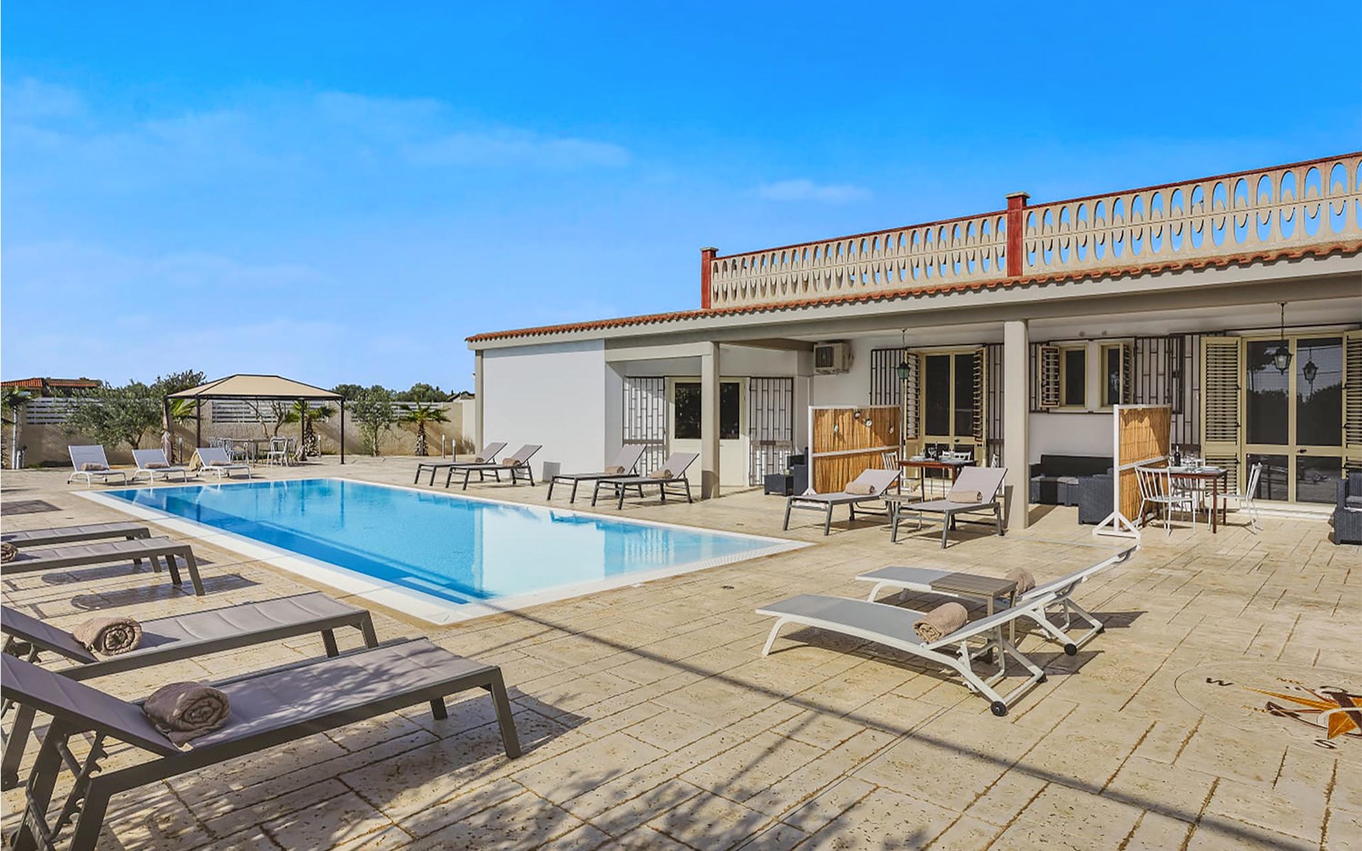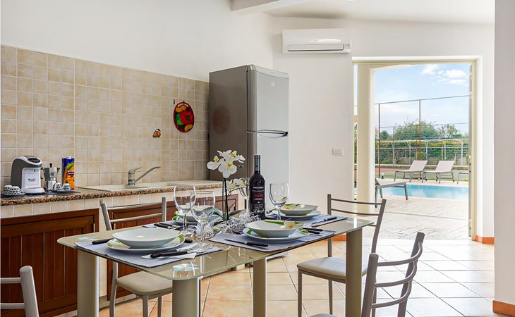 This detached vacation home with swimming pool is located about 1.5 km from the beautiful beach of the Mediterranean coast of Sicily.