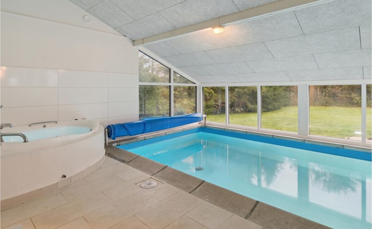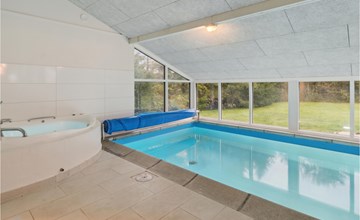 This vacation home is located just a short walk from the center of the resort of Marielyst, where a variety of shopping and exceptional vacation experiences await you. It is very suitable for a family vacation or vacation with friends. Without a doubt, the swimming area with a large pool and a 2-3 pers. jacuzzi is the center of the house. The house is very cozy and decorated in bright and friendly colors. Another oasis of well-being is the cozy fireplace, in addition, one of the bathrooms also has a sauna. From the living room there is a large south-facing terrace. Here you have: golf course, adventure with bowling, shooting, paintball and go-kart.