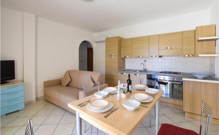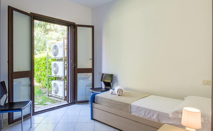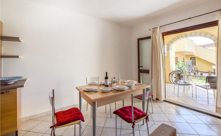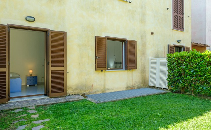 This bright vacation home with space for the larger family is the ideal base for your summer vacation in Sardinia. The kitchen has direct access to the covered terrace where you can enjoy your meals or just a good cup of coffee. The one bedroom has access to the beautifully overgrown garden.
