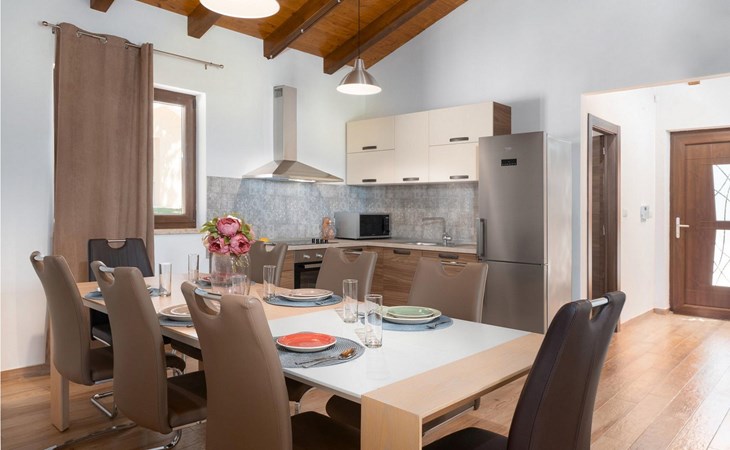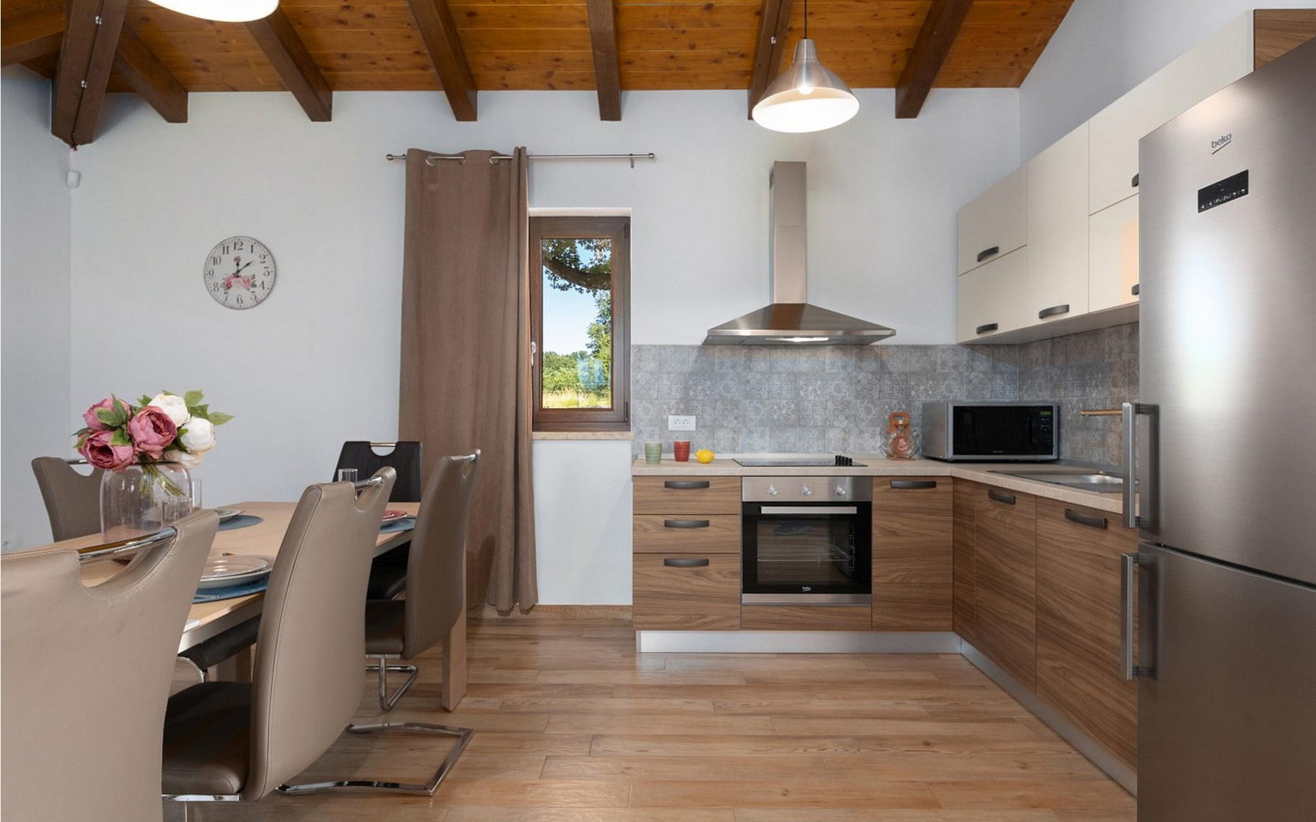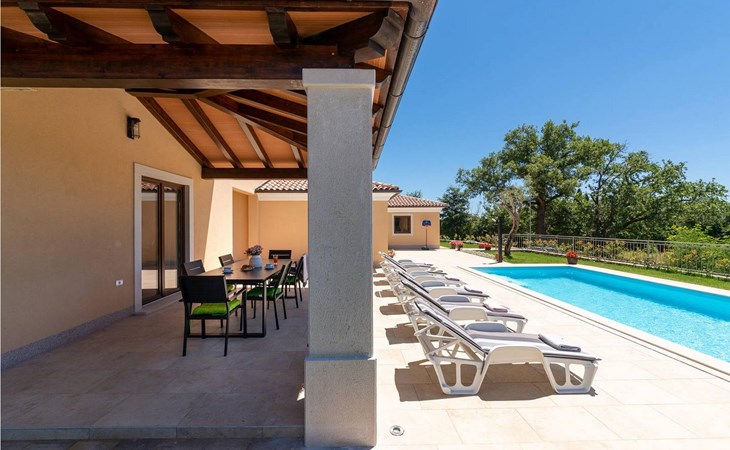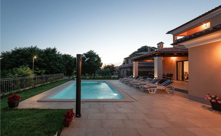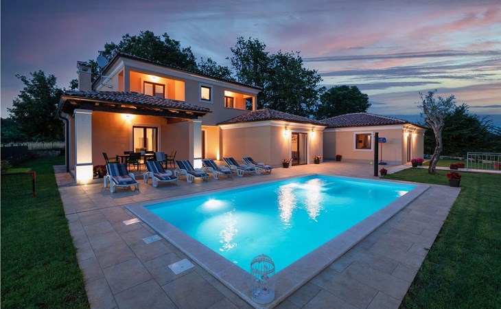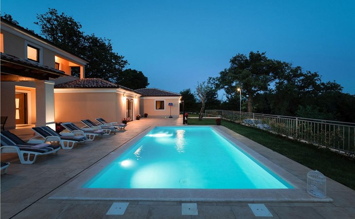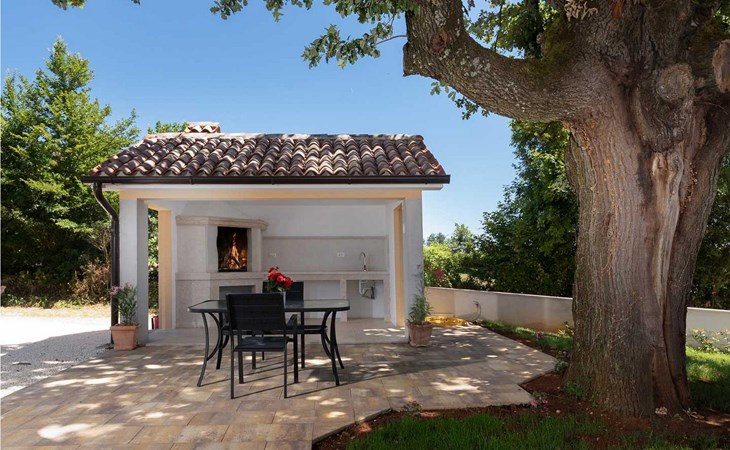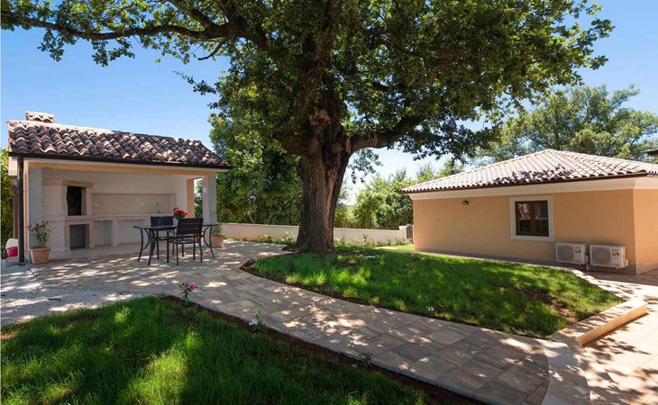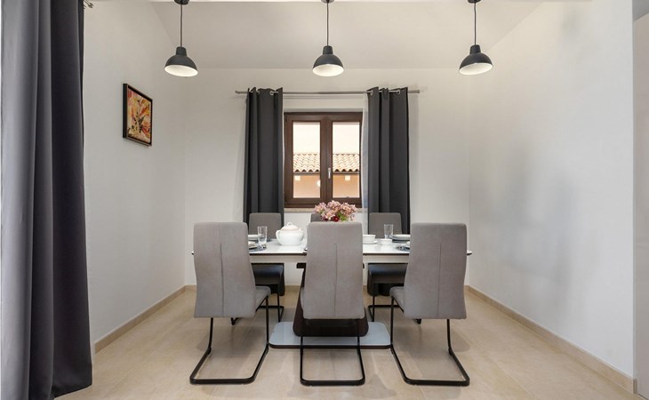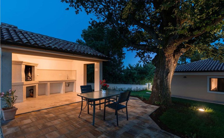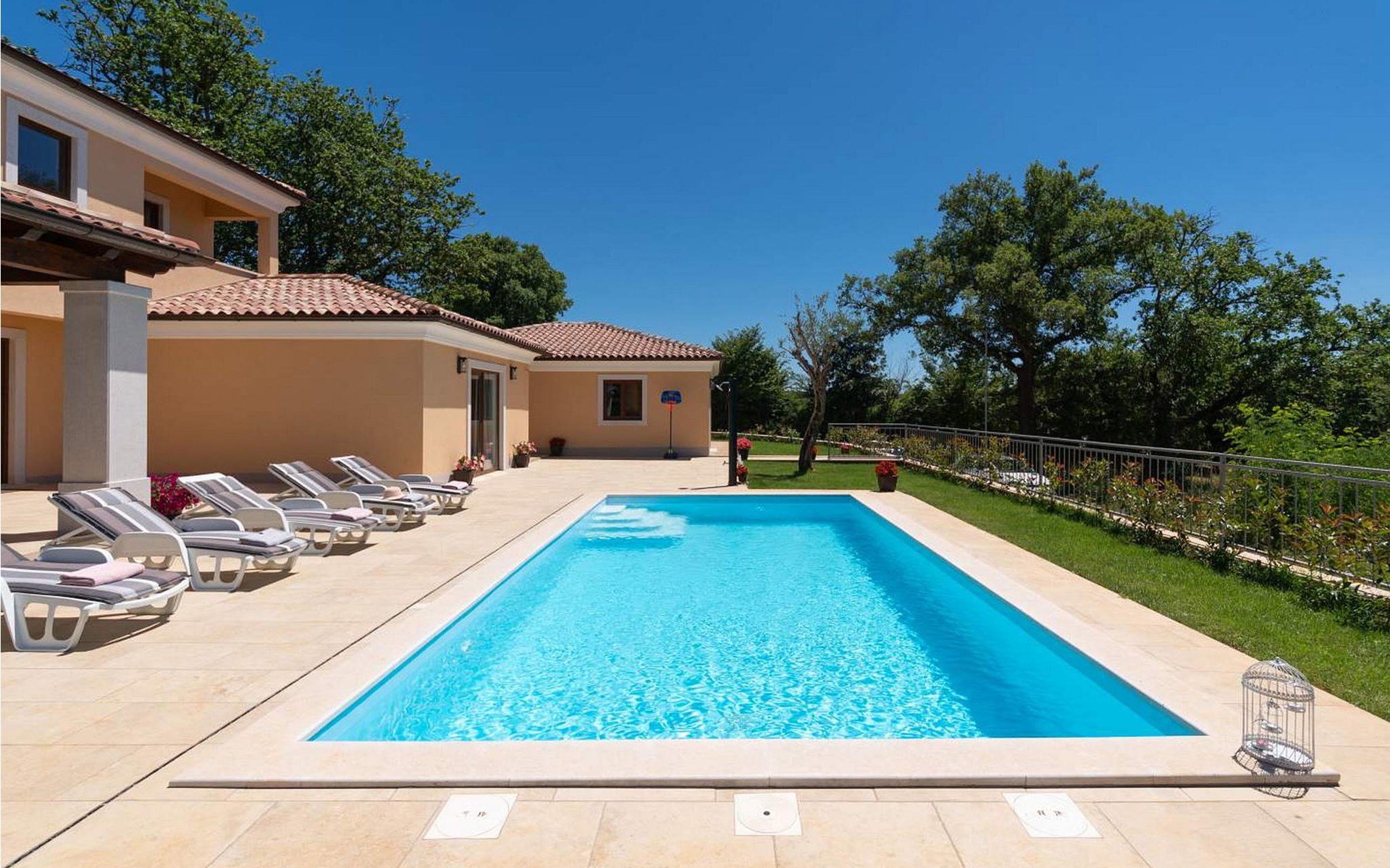 Welcome to Villa Re, a newly built oasis in central Istria, just a short drive from the enchanting town of Rovinj. Set on a spacious, fenced plot of 800 square metres, this villa features a manicured lawn, a sparkling pool for refreshing dips and a covered terrace where you can enjoy your meals at the dining table. The summer kitchen is perfect for preparing delicious feasts and there are two parking spaces at your disposal. In the charming village of Svetvincenat you will find cafés, a pizzeria and a supermarket for your daily needs, while the nearest beach is only 17 km away. Rovinj, with its picturesque old town and breathtaking views of the coast, is a must-see during your stay. Villa Re is the ideal retreat for an unforgettable and relaxing holiday.