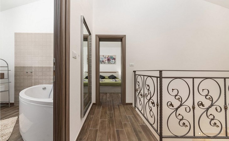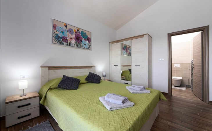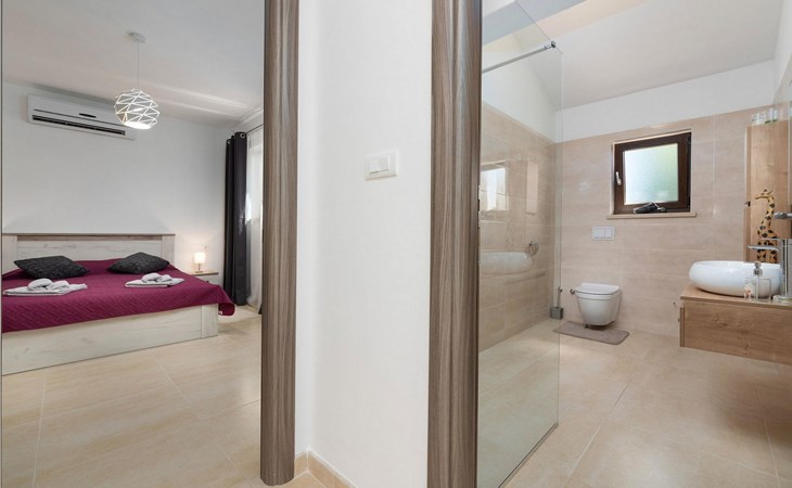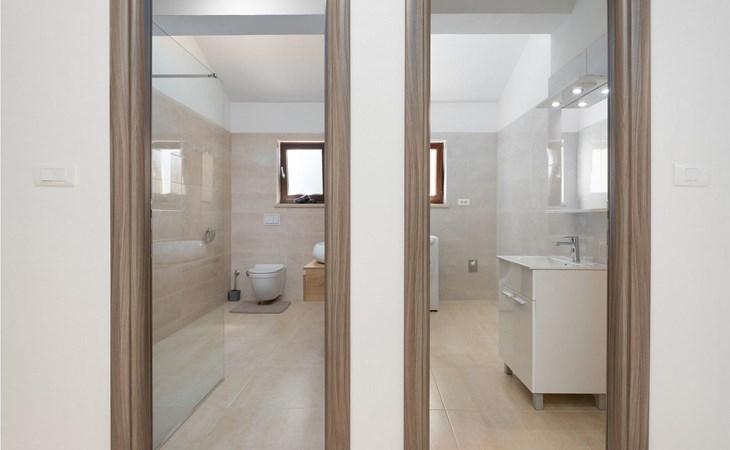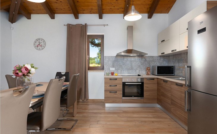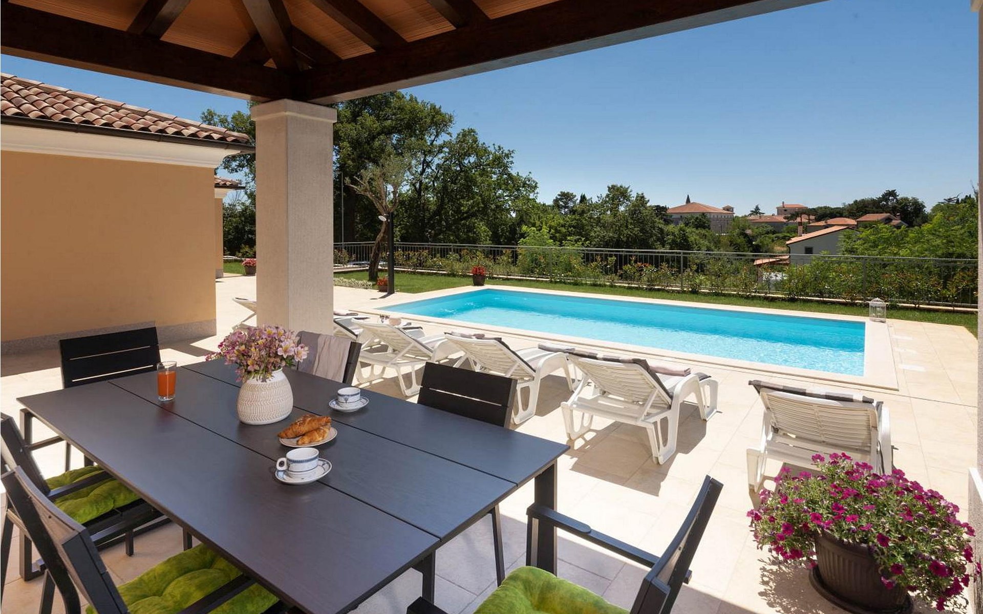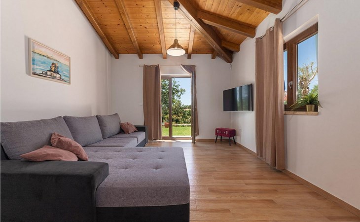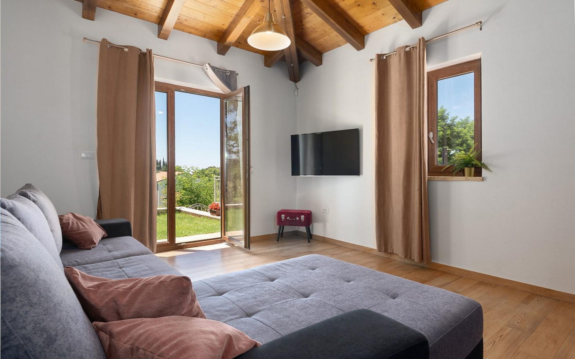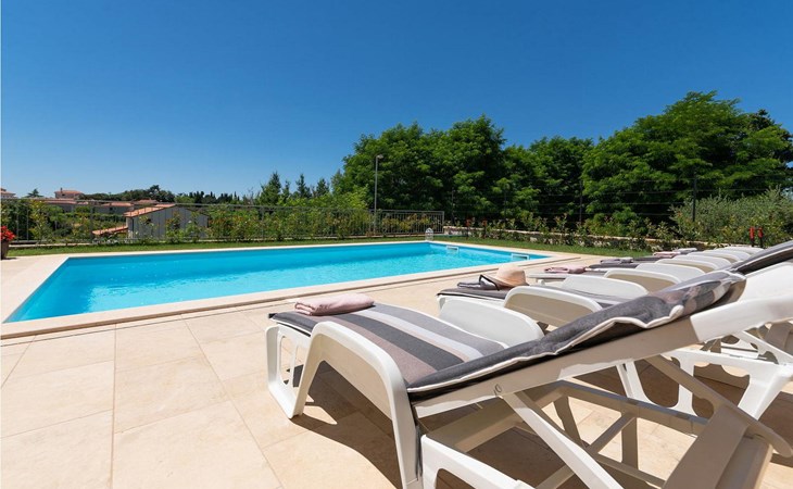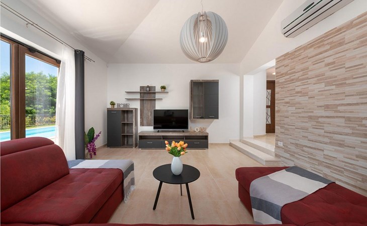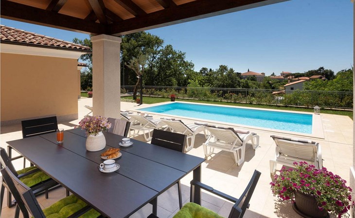 Welcome to Villa Re, a newly built oasis in central Istria, just a short drive from the enchanting town of Rovinj. Set on a spacious, fenced plot of 800 square metres, this villa features a manicured lawn, a sparkling pool for refreshing dips and a covered terrace where you can enjoy your meals at the dining table. The summer kitchen is perfect for preparing delicious feasts and there are two parking spaces at your disposal. In the charming village of Svetvincenat you will find cafés, a pizzeria and a supermarket for your daily needs, while the nearest beach is only 17 km away. Rovinj, with its picturesque old town and breathtaking views of the coast, is a must-see during your stay. Villa Re is the ideal retreat for an unforgettable and relaxing holiday.