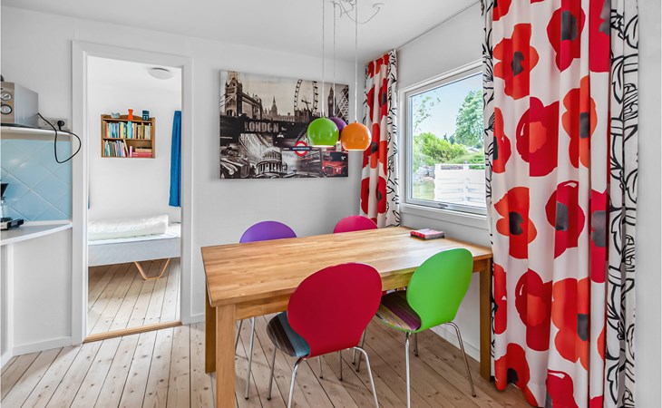 This vacation home has an open kitchen-living room with a fireplace. On the terrace you can enjoy the sun and summer evenings. Approx. 500 m lies the house from the coast. Drøsselbjerg beach is known for its charming nature, clear and pure swimming water and good fishing. This cozy vacation home is situated on a wonderfully large plot of land, planted all around, with a large lawn where the whole family can romp around. Within a radius of about 10 km are the towns of Gørlev, Løve, Høng and Dalby. During the summer months you can experience an exciting market day every Saturday morning in Gørlev. Also visit Løve, which is on the way to Høng, and where you will find one of the best preserved mills in Denmark. During the summer you can also witness how work was once done in a mill. Perhaps you will take a ride in a horse-drawn carriage or visit the Rose Museum with its rosarium and beautiful garden, where you will find an impressive collection of roses. Høng is a cozy little town with very good shopping facilities, while in Dalby there is an interesting agricultural museum. You may also continue to the small peninsula of Reersø and experience the uniquely preserved village ambience. Here you will also find Reersø Kro, which is known for its cozy atmosphere.